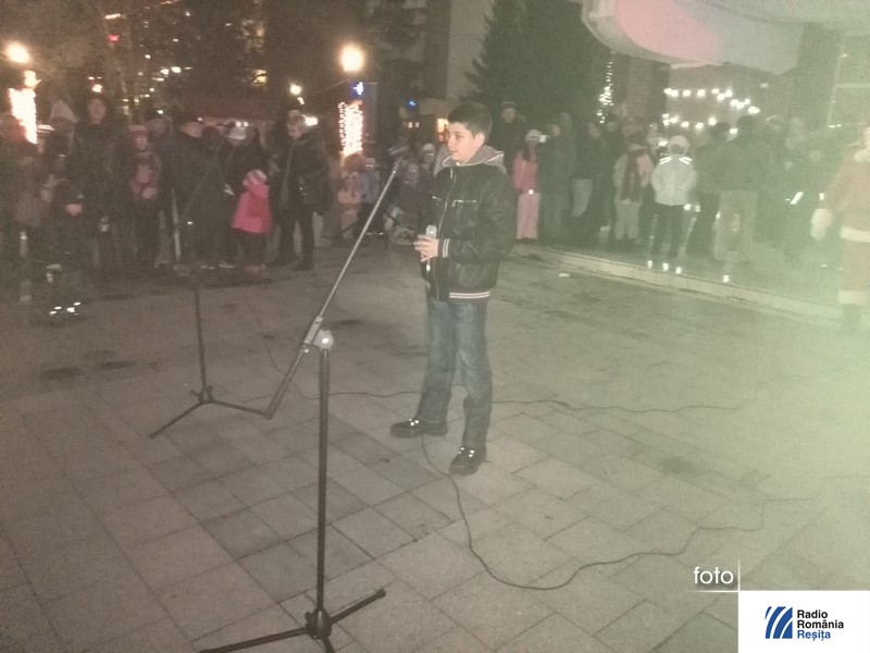 Tineri de la şcolile gimnaziale numărul 2 şi numărul 6 din Reşiţa, împreună cu o parte din corul de copii Menestrelul şi tânărul Ionuţ Ghilea, au susţinut un spectacol în faţa sutelor de reşiţeni prezenţi la eveniment.