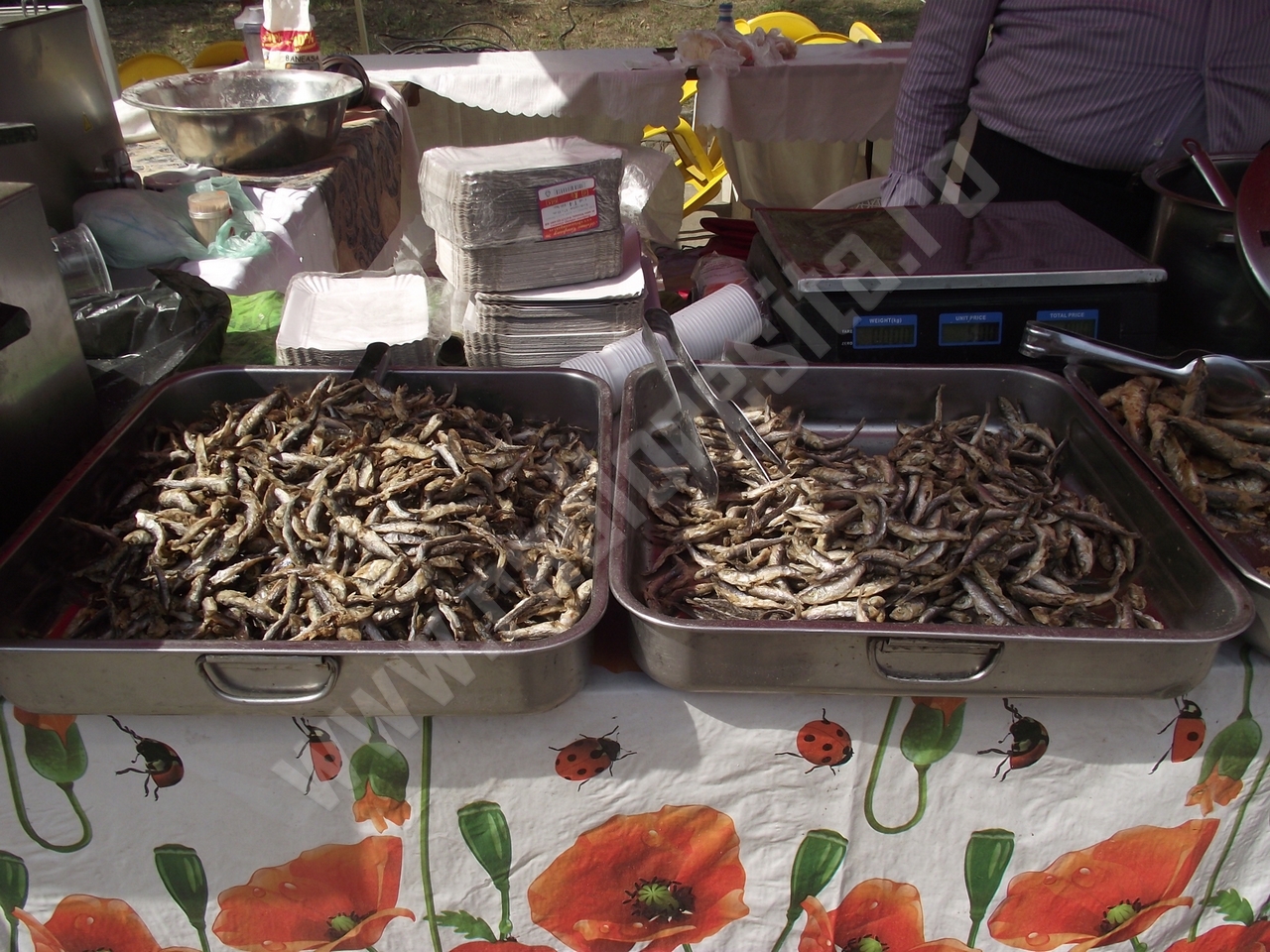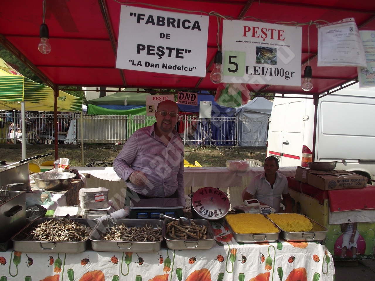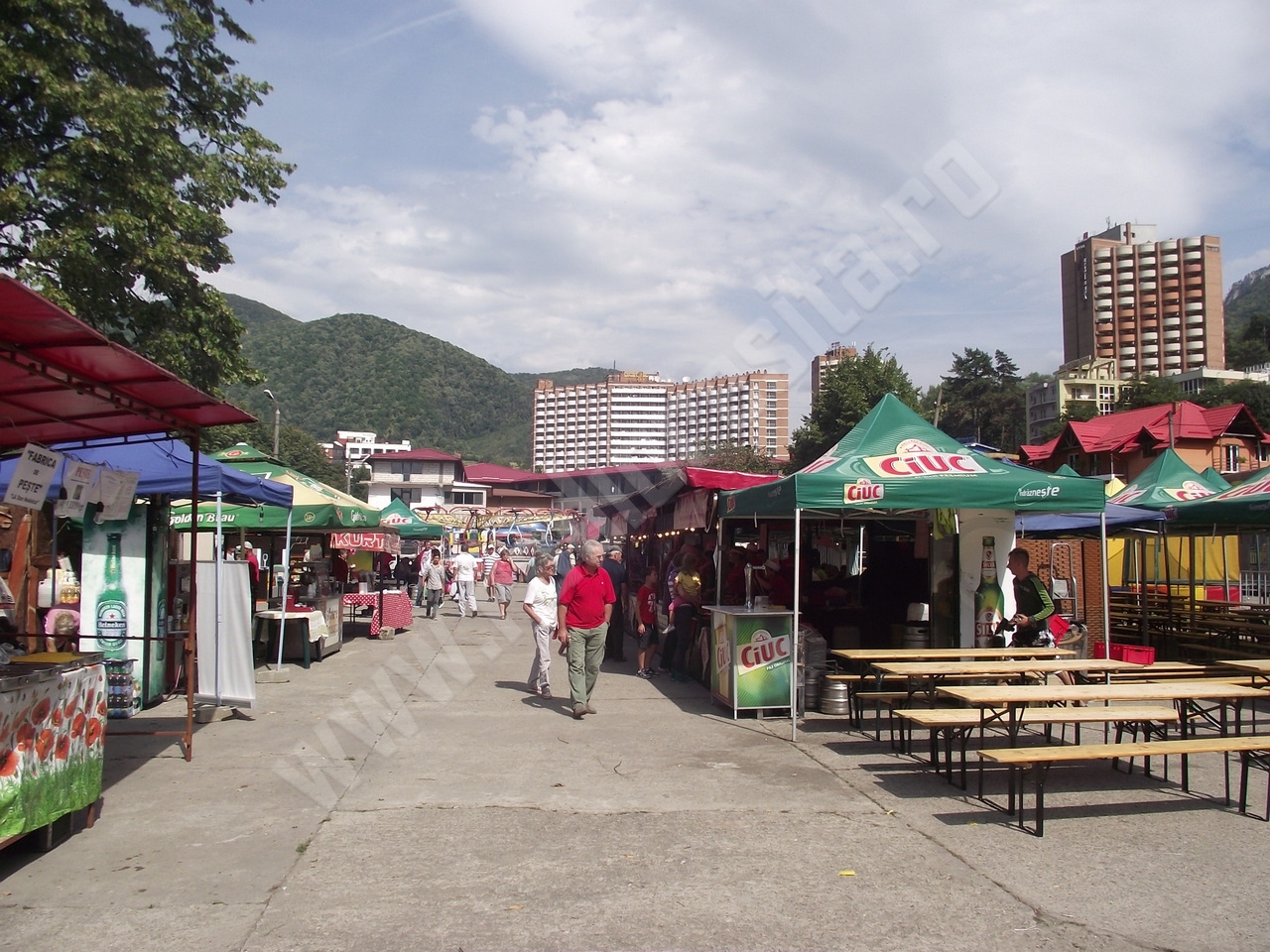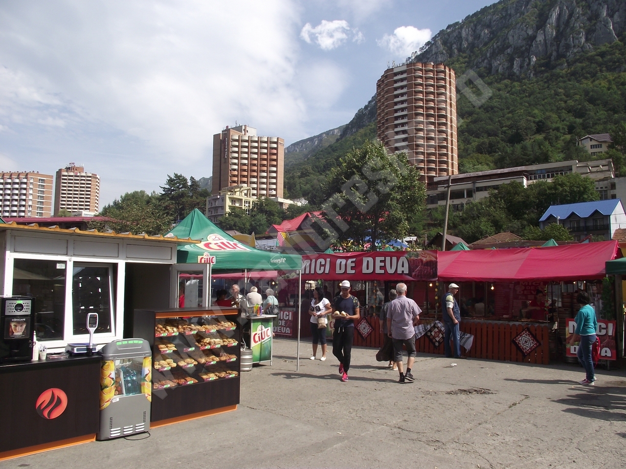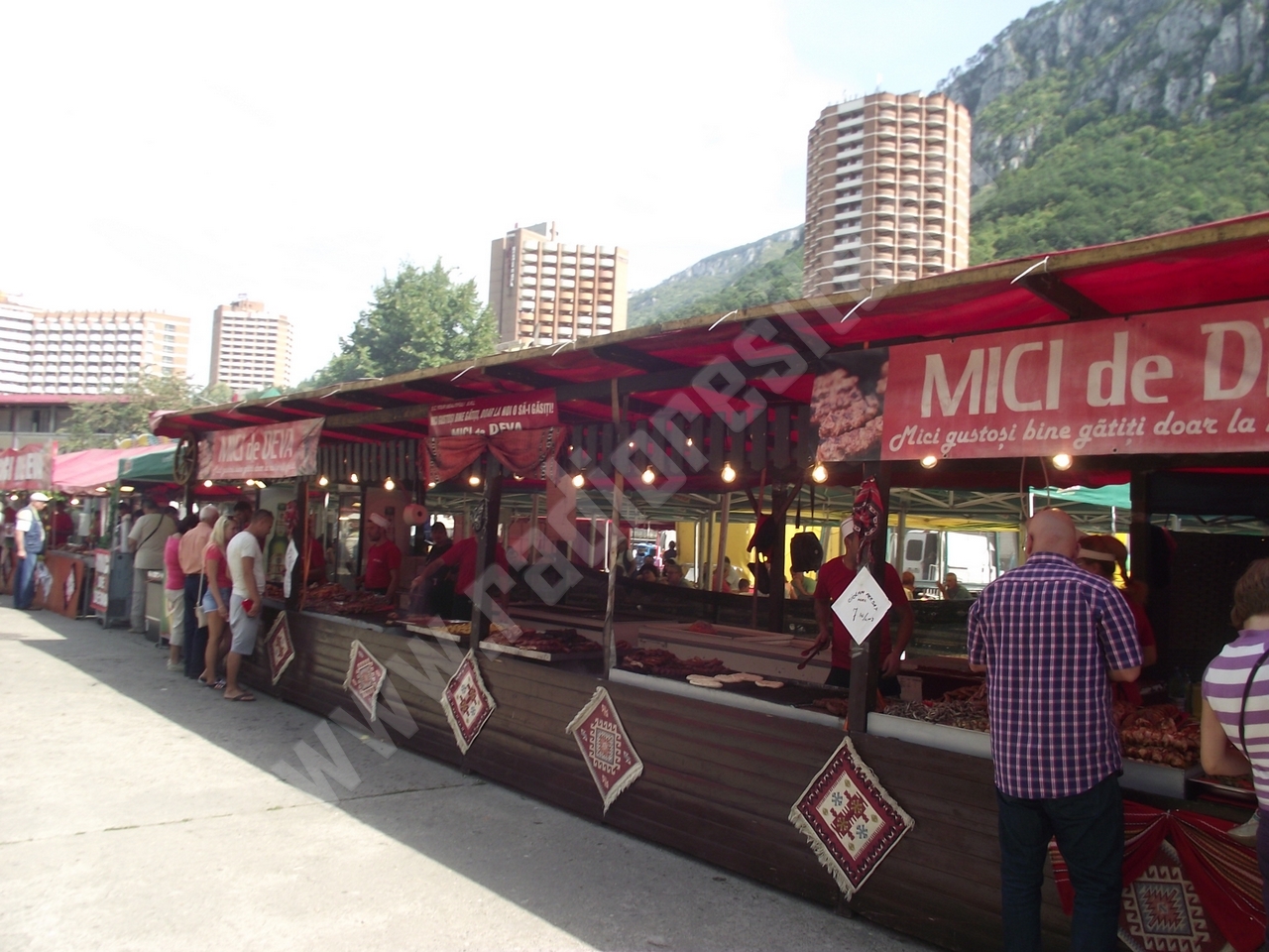 Standurile alimentare sunt mai puţine decât la ediţiile precedente, însă încearcă să facă faţă solicitărilor care, ca de obicei, nu sunt foarte numeroase în prima parte a zilei! Grătarele, însă, sfârâie şi se simte aroma frigăruilor, cârnaţilor, cotletului şi, desigur, nelipsiţilor mititei! Nu lipseşte din peisaj peştele, şrotul sau hamsiile prăjite, sărate sau mai puţin sărate sau chiar deloc sărate, dar asortate cu un vin alb ori roşu! Spre seară, când vor începe spectacolele de muzică populară şi muzică uşoară la scena amenajată în interiorul parcării, va creşte şi numărul celor care vor veni să petreacă aici sărbătoarea oraşului. Şi chiar dacă în jurul prânzului s-a înteţit puţin vântul, vremea este frumoasă astăzi pe Valea Cernei şi îmbie fie şi doar la o plimbare de seară, care se poate prelungi târziu în noapte la ZILELE ORAŞULUI BĂILE HERCULANE!