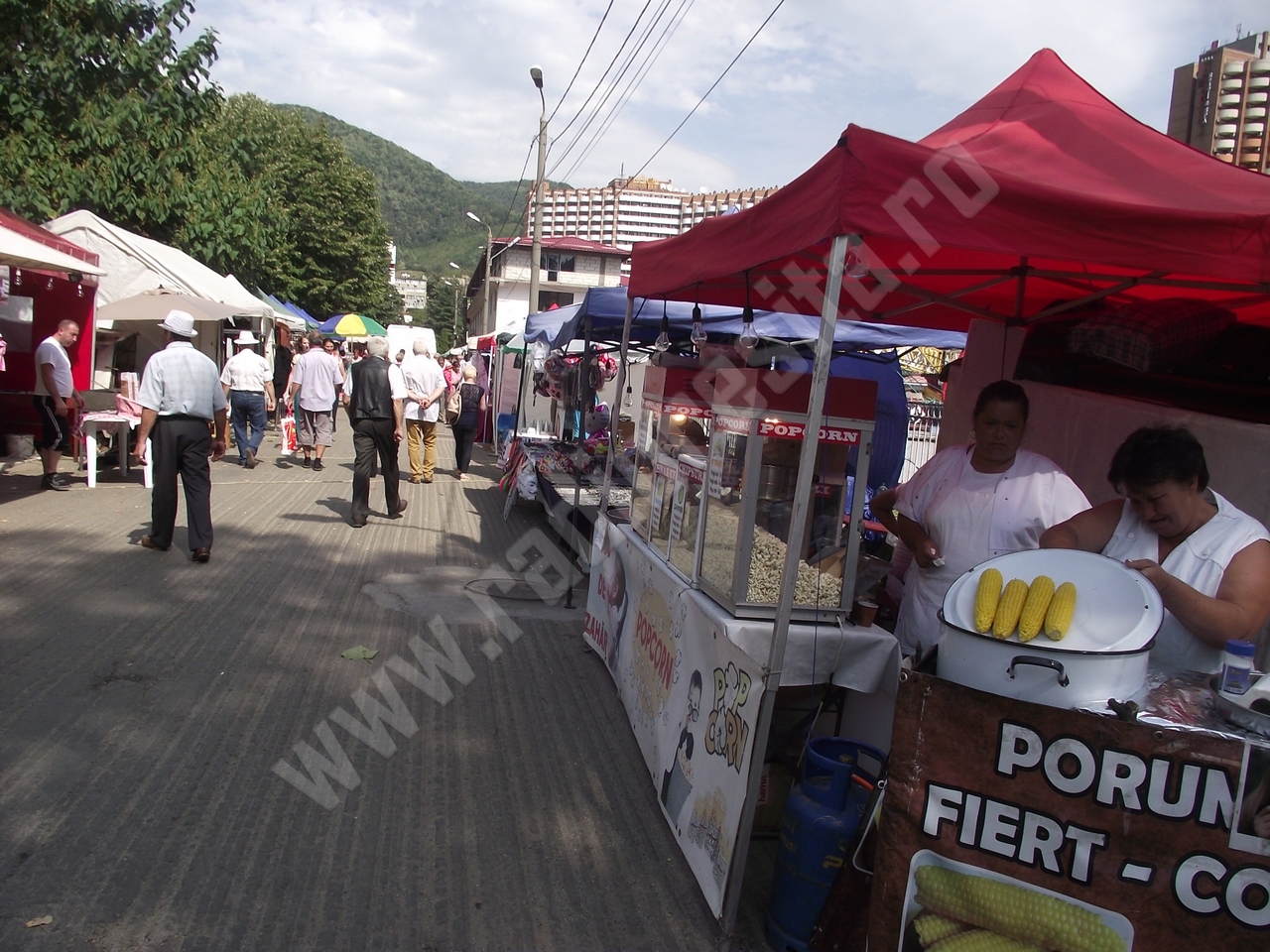 În perimetrul parcării din zona Parcului Vicol din staţiunea Băile Herculane începe să se simtă tot mai mare animaţie după orele prânzului, localnicii şi turiştii trecând pe la standuri pentru a lua un prim contact vizual cu produsele expuse, unii fiind hotărâţi să cumpere încă din prima zi, alţii lăsând această pasiune pentru ultima zi,când speră ca preţurile să mai scadă, mai ales la îmbrăcăminte şi încălţăminte! Copiii se pot şi ei bucura de caruselurile instalate în zonă, dar şi standurile unde se pot picta pe faţă ori să îşi facă tatuaje temporare sau chiar să îşi facă o caricatură!
