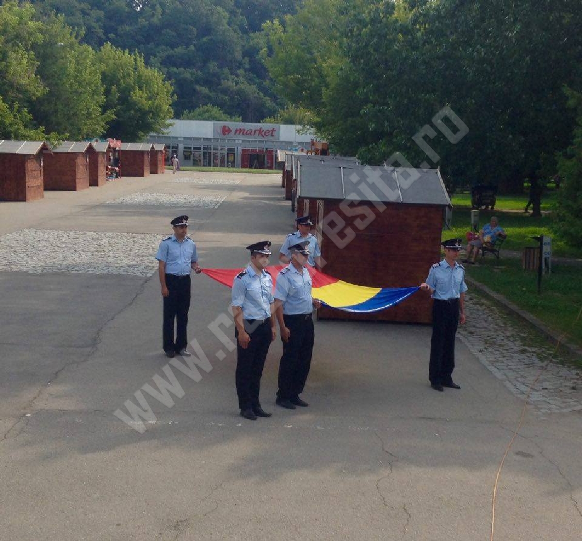 Ceremonia organizată de Ziua Drapelului s-a încheiat cu o o scurtă paradă militară, detaşamentul de onoare fiind format din două plutoane de la ISU şi Jandarmeria din Caraş-Severin.