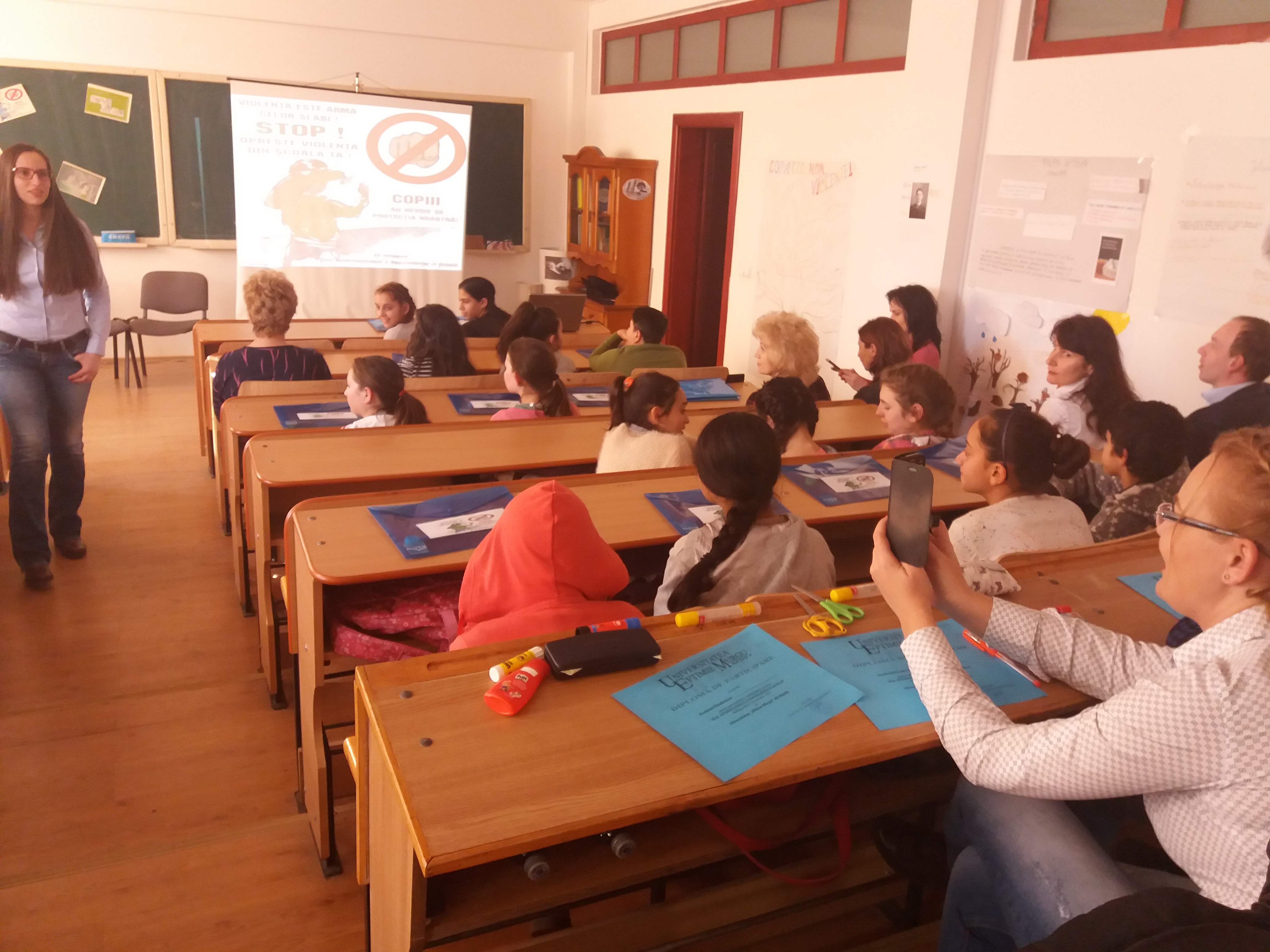 ,,Noi am pregătit o scenetă despre ce înseamnă violența în școală. Prin această scenetă vrem ca toți copiii să înțeleagă că nu este bine să fi violent la școală sau pe stradă. Nu am participat niciodată la un act violent și nici nu îmi doresc’’