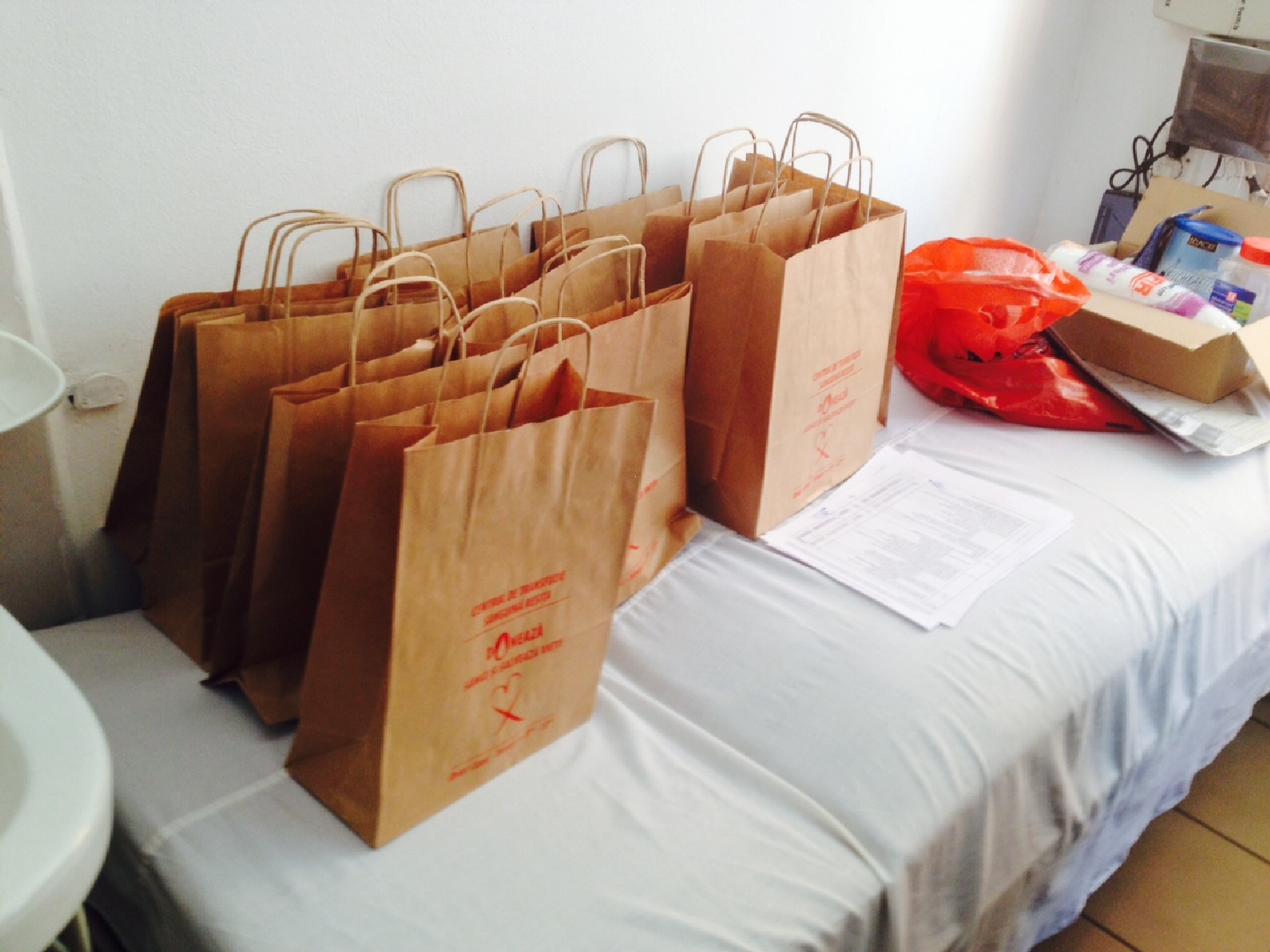 De această dată cei care au ajuns la centru au fost surprinşi după ce au donat sânge, pe lângă tradiţionalele bonuri de masă şi cu o pungă plină cu dulciuri.