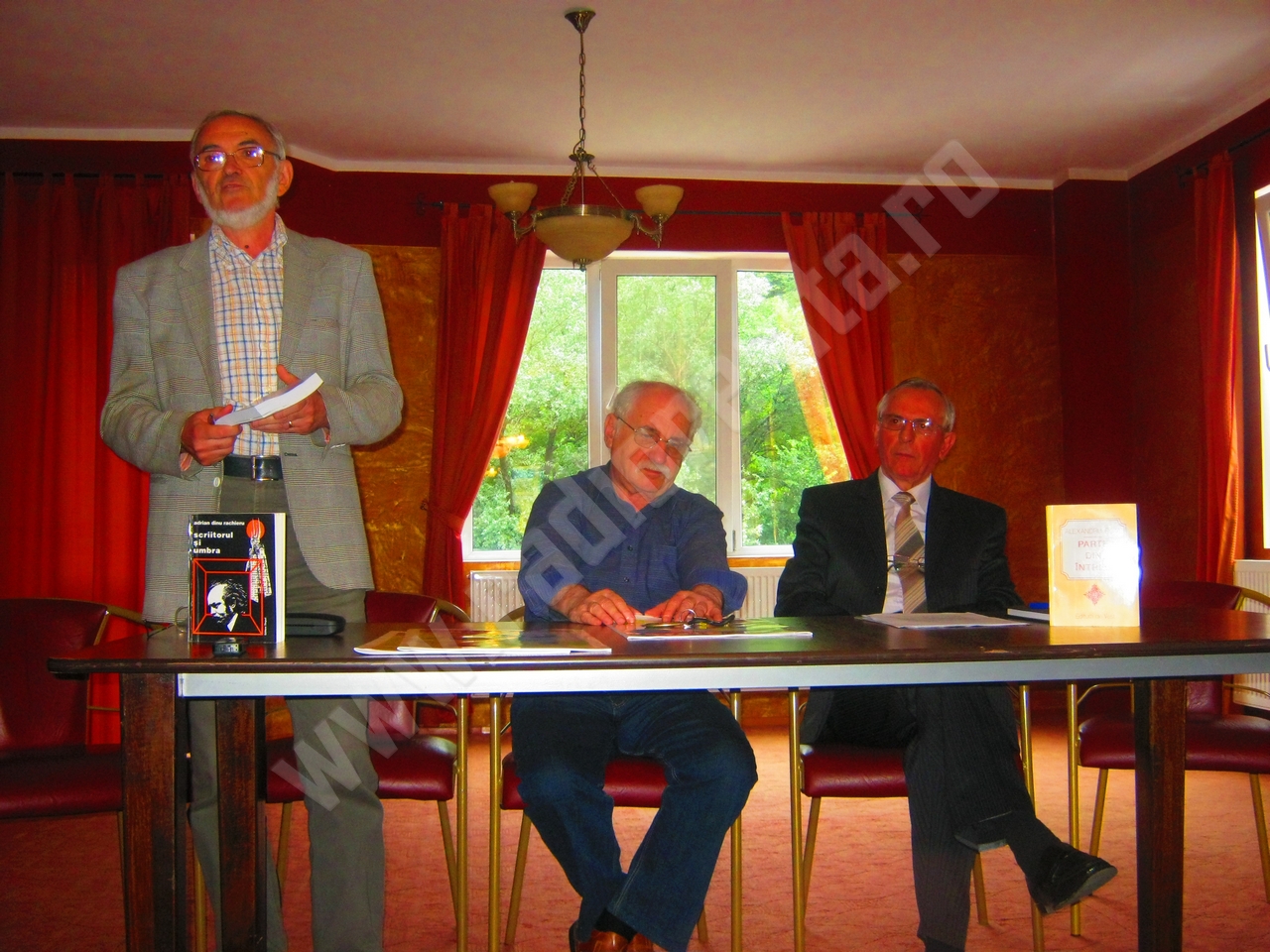 Lucrările celei de-a XV-a ediţii a Colocviilor Revistei „Reflex” au continuat pe Valea Cernei, în prima parte a dimineţii fiind prezentate revistele şi editurile care, din cauza timpului insuficient alocat în program în prima zi, nu şi-au expus cele mai noi apariţii editoriale. Şi pentru că tema centrală a colocviilor i-a fost dedicată scriitorului bănăţean Sorin Titel la 80 de ani de la naştere şi 30 de ani de la moarte, a urmat susţinerea referatelor despre viaţa şi opera celui omagiat. Prof.univ.Alexandru Ruja din Timişoara a vorbit în eseul său (publicat în volumul „Parte din întreg”- Ed.Vest) despre „Margina, margine şi centru” subliniind că Bucureştiul n-a fost un Eldorado pentru el, retractil la realitatea obiectivă, şi-a asumat destinul prin operă, în faţa colii de scris. Sorin Titel a demonstrat din Margina sa natală că marginea configurează centrul, care altfel nici nu poate exista. De asemenea, sociologul Adrian Dinu Rachieru a argumentat că Sorin Titel a fost un om punte, el redescoperind Banatul doar odată fixat în Bucureşti, după ce experimentase deja reţetele noului roman în perioada timişoreană. Ilustrul sociolog a publicat, de altfel, prima carte despre Sorin Titel in 1995, la Editura Timpul din Reşiţa „ Scriitorul şi umbra – Eseu despre proza lui Sorin Titel”, iar recent în Vol.I ”Romanul politic şi pactul ficţional” Ed.Junimea, i-a dedicat un capitol însemnat din perspectivă socialogică, respectiv „Sorin Titel şi istoria mică”, precizând că el a cultivat, potrivit lui Valeriu Cristea, „proza cu inimă”. Criticul şi istoricul literar Cornel Ungureanu a menţionat importanţa biografiei titeliene la cercetarea culturală si literară românească, accentuând ceea ce afirma academicianul Eugen Simion referitor la posteritatea sa (care a început în urmă cu 30 de ani), şi-anume, că „Sorin Titel va fi într-o zi o revelaţie”. Intervenţiile şi dezbaterile la tema prezentată în cursul dimineţii s-au desfăşurat de la ora 18.00, la cuvânt fiind înscrişi criticul Maria Niţu din Timişoara, care a publicat un eseu despre semnificaţiile zăpezii în biografia lui Sorin Titel în revista „Reflex”, publicistul Titus Suciu, care l-a cunoscut în perioada navetei la Cârpa şi filologul Adela Lungu Schindler, care i-a studiat opera. În cadrul dezbaterilor s-a propus ca anul 2015 să fie declarat „Anul Sorin Titel”, cel puţin în Banat. Tot astăzi au venit oaspeţi noi, onorând invitaţiile de participare la această ediţie aniversară a colocviilor Cassian Maria Spiridon, sosit de la Iaşi cu revista „Convorbiri literare” şi Ioan Matiuţ cu revista „Arca” şi Editura „Mirador” din Arad. (Alexandra Gorghiu)