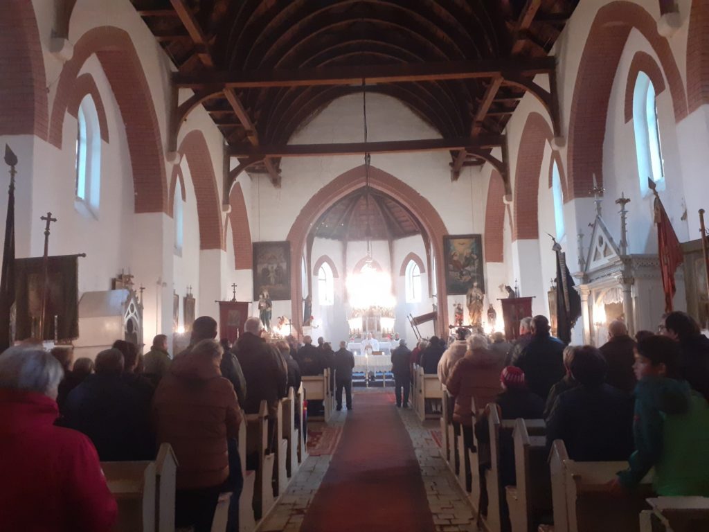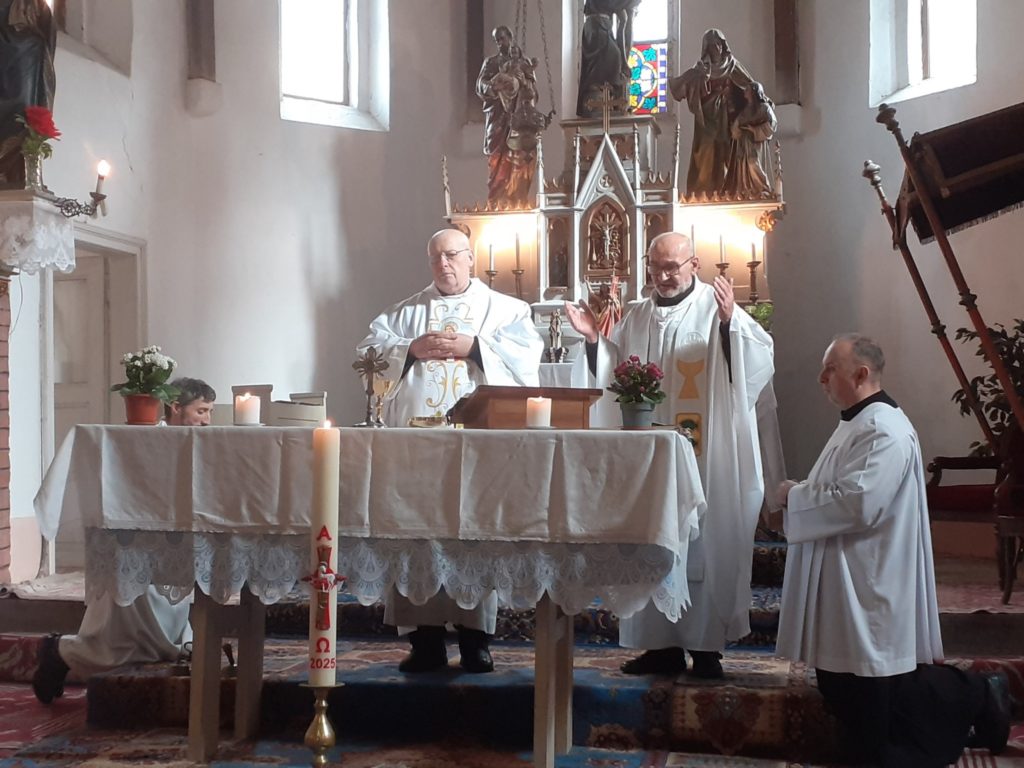 Momentul spiritual al zilei a fost Sfânta Liturghie de Kirchweih, oficiată de monsignor Johan Dirschl, vicar general al Episcopiei de Timișoara, în prezența părintelui Veniamin Pălie, arhidiaconul Banatului Montan. După slujbă, participanții au asistat la ceremonia tradițională a ridicării și sfințirii pomului de Kirchweih, un ritual vechi de secole care marchează binecuvântarea comunității și a casei Domnului.
