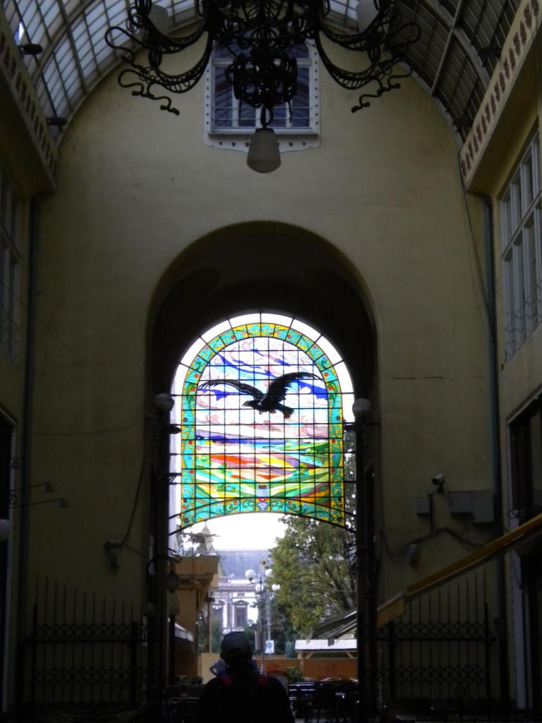 Clădirea este restaurată de curând, aproape în întregimea ei, şi s-au pus în valoare elementele decorativeexterioare, ceea ce îi dă un aspect mult deiferit de ceea ce era înainte. Nu uităm şi vitraliul cu vulturul din interiorul pasajului. Numele vine de la vechiul han Vulturul şi nu are legătură cu  culoarea vulturilor. Era un han de secol XVIII, care a insirat vitraliul şi vulturul de pe faţadă, dar numele este mult mai vechi decât actuala clădire. ( istoricul Mircea Paşca)