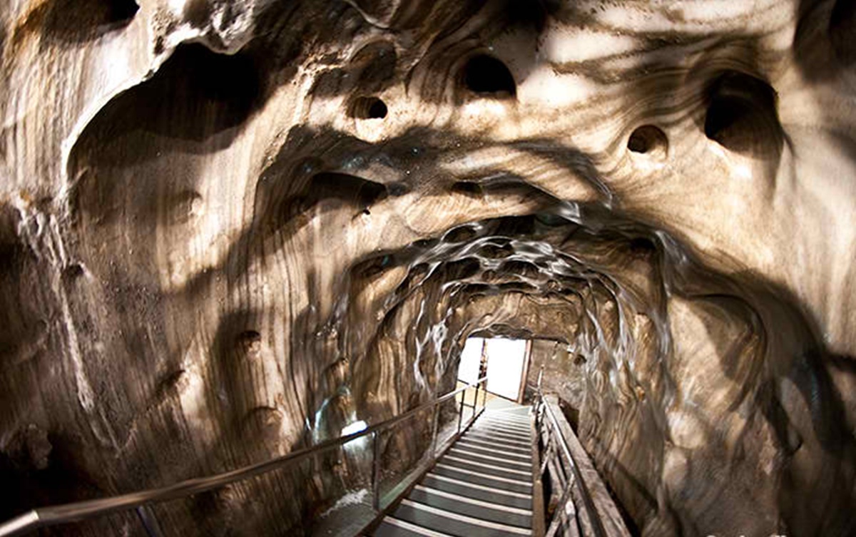 După coborârea printr-un tunel de legătură, la gura minei, şi străbaterea unei părţi a culoarului ce ne conduce înspre mina Terezia, întâlnim Sala Ecourilor. Aici, dacă liniştea este deplină, o simplă strigătură se poate auzi de mai bine de treisprezece ori. Aceasta este doar una dintre sălile care fac din Salina Turda, un loc unic în lume. Însă puţini dintre turiştii care intră în subteran fără un ghid, află despre existenţa ei; majoritatea se îndreaptă direct către mina Rudolf, o sală imensă, lungă cât un teren de fotbal şi adâncă de aproape 100 de metri. Într-adevăr primul contact îţi taie răsuflarea. Senzaţia de ireal este accentuată de luminile care pun în valoare noile facilităţi, care au pus practic, Salina Turda pe harta turistică mondială. După savurarea unei privelişti de ansamblu, cele 172 de scări din lemn de brad, conservate cu ajutorul sării, ne conduc înspre cele două minunăţii. Cea din urmă enumerată, este cea mai veche mină vizitabilă din complexul turistic Salina Turda. A fost deschisă în anul 1690, are 90 de metri adâncime de la balcon, iar de la suprafaţă până la baza camerei sunt 120 de metri. Mina Rudolf este o cameră tip trapezoidal, o exploatare din secolul al XIX-lea, o cameră laterală a minei Terezia. Are o lungime de 80 de metri, sunt treisprezece etaje care ne conduc la baza camerei de la balcon, pe fiecare etaj pe care îl parcurgem vom vedea inscripţionat în perete, săpat cu dalta de către mineri, anul la care au atins adâncimea respectivă. ( Arpad Nemeş, ghid turistic).