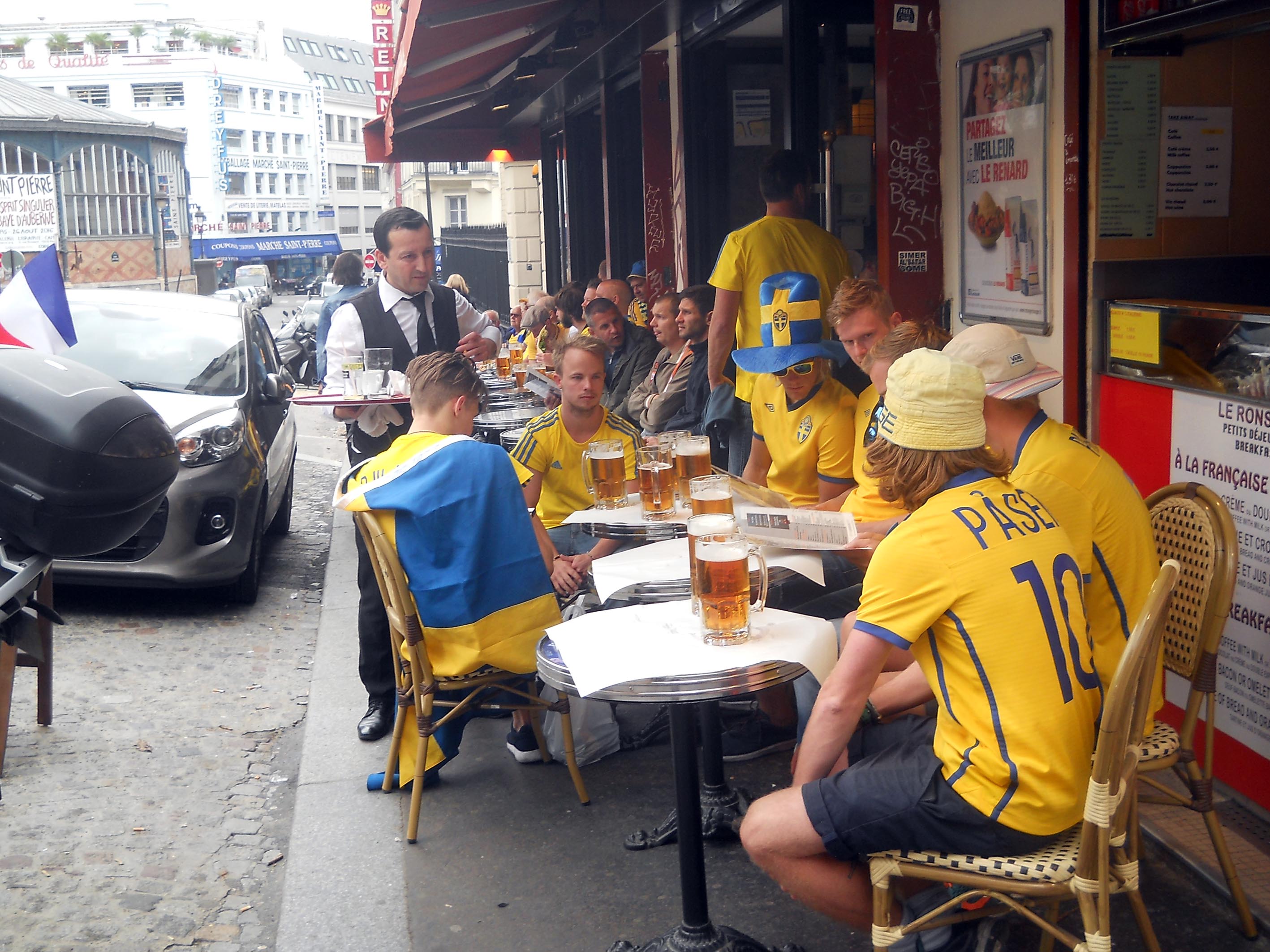 În continuarea traseului de azi, am coborât din Montmartre înspre Sena, apelând ce-i drept și la metrou. Grupuri de suedezi, grupuri de irlandezi, grupuri de suedezi… cântece, scandări, dansuri ritualice… asta-i frumusețea fotbalului fără violență. Toată lumea speră ca incidentele de la Marsilia să rămână un unicat al acestui turneu final, deși organizatorii erau preveniți și dăduseră asigurări că situația e sub control… Cât despre altercația pariziană dintre steliști și dinamoviști, mai hilar de-atât nu se poate.