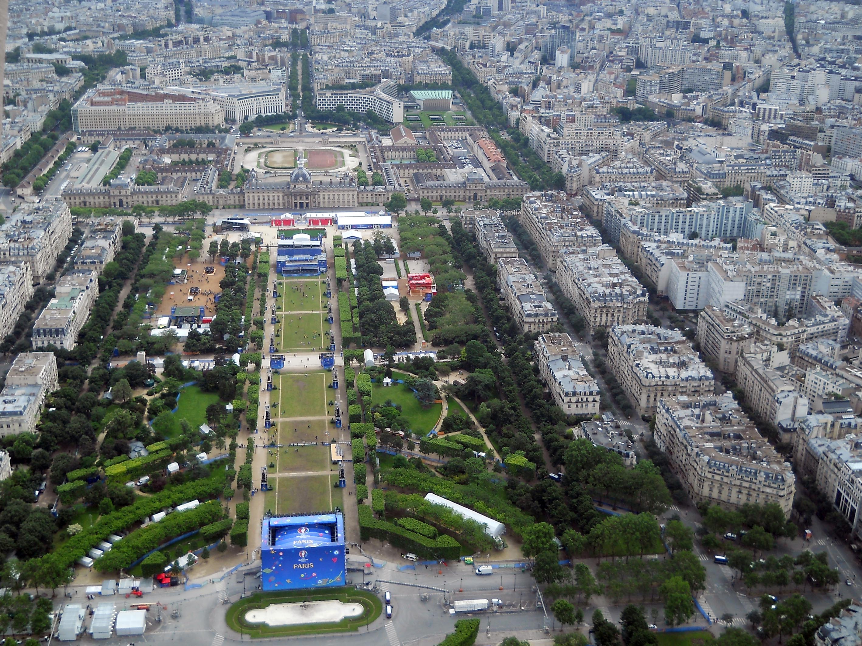 Grupurile cele mai numeroase de fani – aceiași suedezi și irlandezi, dar aici am întâlnit și destui români. Se bucurau de priveliștea specială pe care o ai asupra capitalei Franței de la cele trei nivele ale turnului realizat de vestitul inginer francez pentru ediția din 1889 a Expoziției Universale. Imensa minge de fotbal, suspendată între cei patru piloni deasupra primului nivel, nu face decât să confirme, întreg Parisul este un imens teren de fotbal!