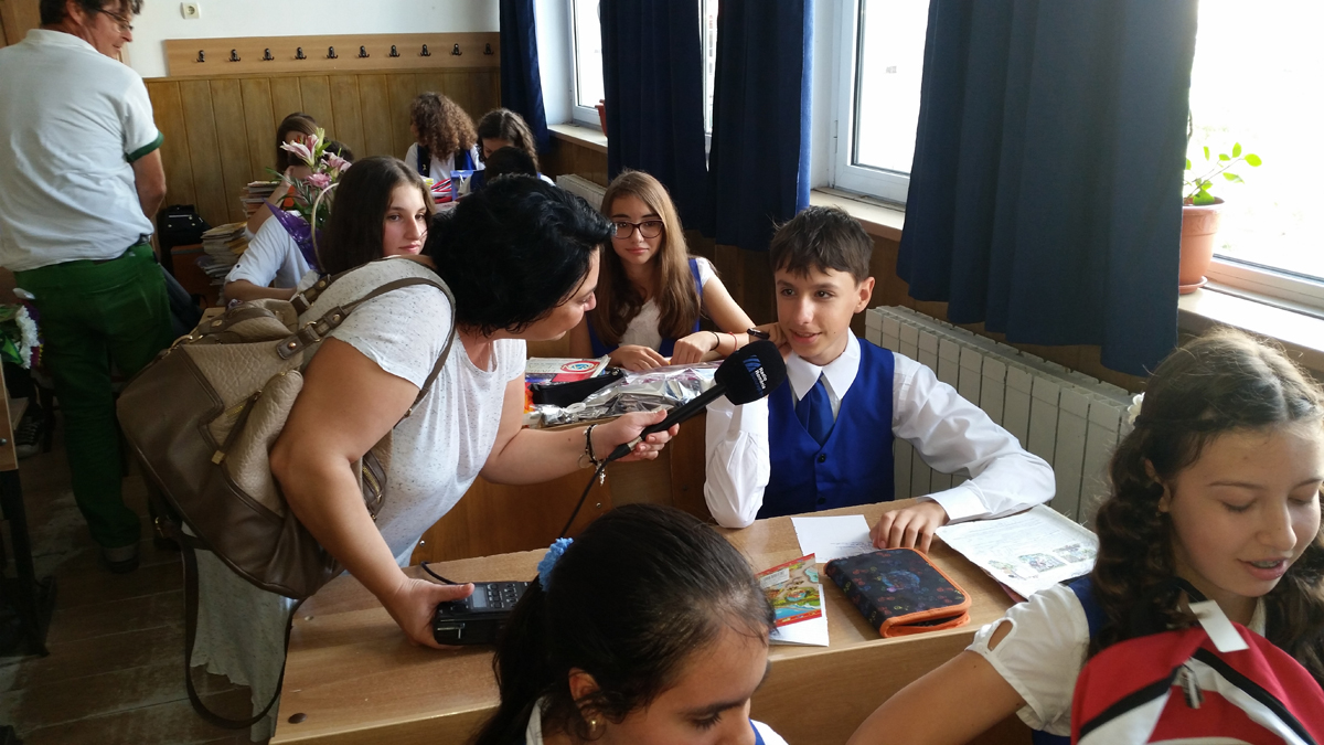 În prima zi de şcoală, 14 septembrie, echipa Bucureşti fm a fost primită cu entuziasm de Andreea şi prietenii ei, bucuroşi să primească daruri.