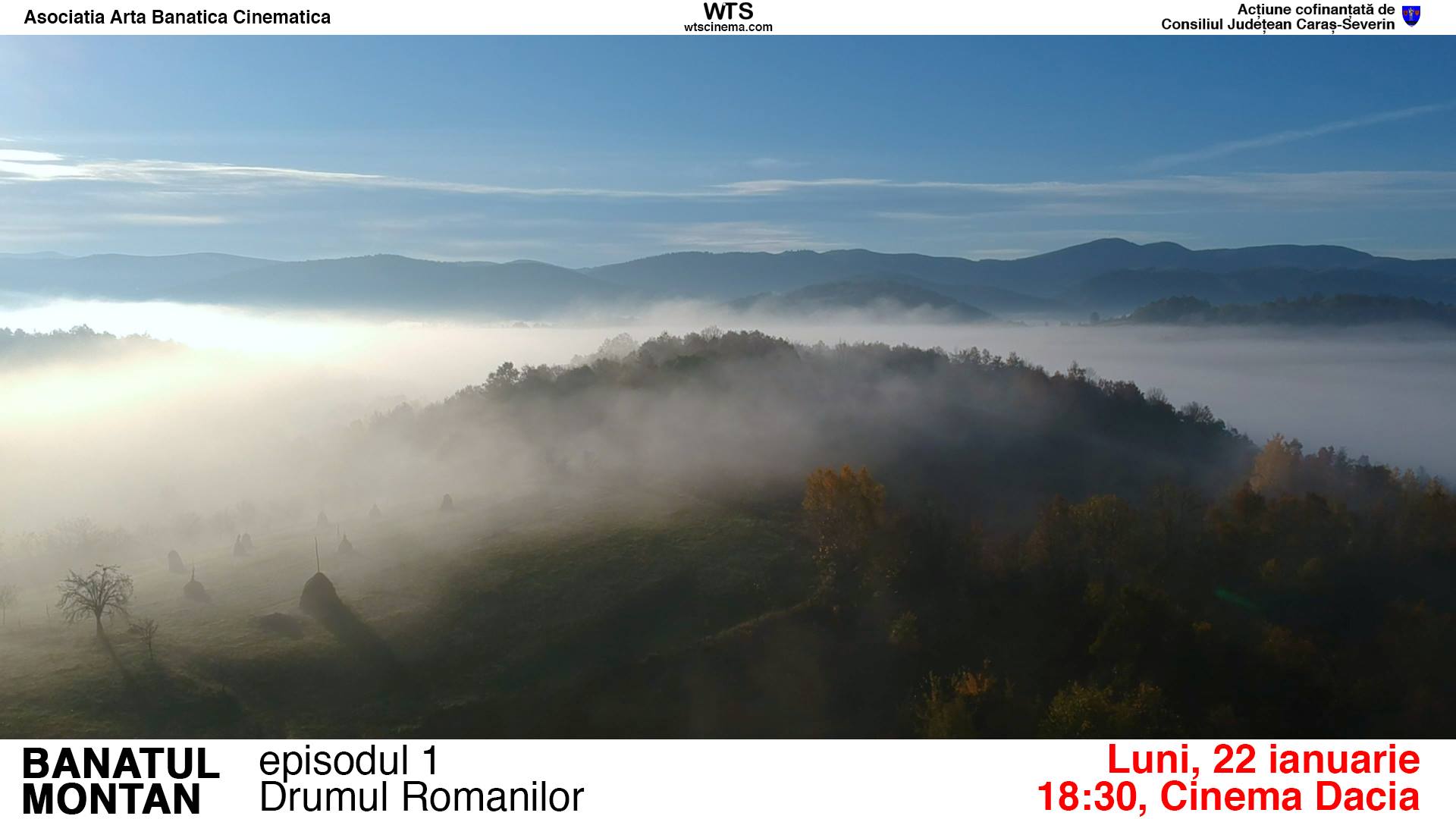 Cel de-al doilea film este o surpriză pentru bănățeni. Proiectul se numește ”Banatul Montan” și e vorba de primul episod dintr-o serie de 3 documentare turistice despre județul Caraș-Severin. Această trilogie ar urma să fie realizată de-a lungul a trei ani, câte un film în fiecare an. În cadrul premierei de Luni 22 ianuarie, de la Cinematograful Dacia, vom vedea primul episod, realizat în anul 2017 și intitulat ”Drumul Romanilor”. Această primă parte a trilogiei propune descoperirea atracțiilor turistice din orașele județului, urmărind drumul legiunilor romane, în campania de cucerire a Daciei din anul 101. Seria ar urma să continue cu încă două părți: episodul 2 s-ar realiza în acest an, iar episodul 3 în 2019. Dacă în primul episod din ”Banatul Montan” au fost promovate zonele citadine din Banatul Montan, pentru episodul 2 și 3 au rămas multe alte atracții și povești care încă n-au fost filmate: Munții Țarcu, Rusca Montană, Rudăria, Cheile Nerei, Calea Ferată Anina-Oravița, Carașova, Peștera Comarnic, Munții Semenic, Docnecea, Bocșa, Cascada Bigăr, Pârtiile de Schi, Valea Almăjului, etc.
