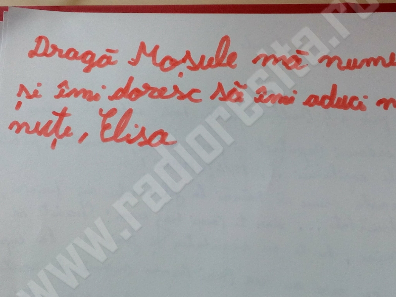 Sensibilizat de gesturile acestor copii, Moș Crăciun a pus între darurile sale o rază de speranță, care aduce în ea Lumina Stelei ce o să răsară în Betleem de Crăciun pentru a mângâia sufletele celor buni care dăruiesc și știu să primească-DRAGOSTE.