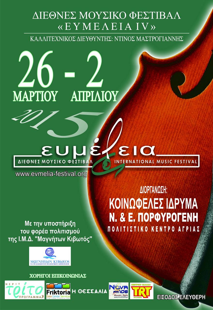 Festivalul Evmelia este unul dintre cele mai apreciate evenimente muzicale internaţionale din Grecia: la primele trei ediţii au participat artişti din 45 de ţări de pe toate continentele, iar repertoriul, dirijorii, soliştii şi orchestrele invitate îl recomandă ca fiind un festival european de primă importanţă. Fiecare ediţie a Festivalului a prezentat publicului o varietate de evenimente şi genuri muzicale, de la concerte de muzică clasică şi jazz la workshop-uri şi rezidenţe artistice pentru compozitori.