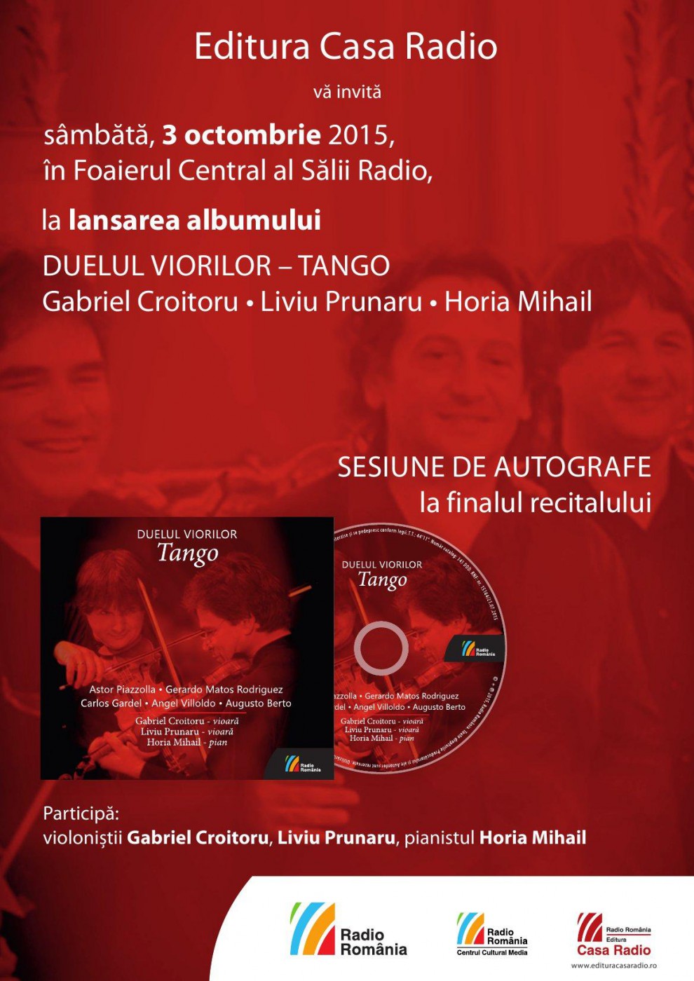 Atractivitatea evenimentului, deja cunoscut si asteptat de publicul bucurestean, este una speciala prin bonusul oferit spectatorilor de catre Editura Casa Radio la finalul recitalului, în foaierul central al Salii de concerte Radio: lansarea recentului album Duelul viorilor – Tango si o sesiune de autografe cu cei trei artisti.