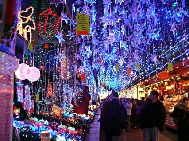 In jurul catedralei se aliniaza casutele care vand podoabe pentru pomul de Craciun: ingerasi, lumanari, beteala, casute din sticla colorata, scufii de Craciunei, jucarii, decoratii, dulciuri, ceaiuri, suveniruri, biscuiti de Craciun..