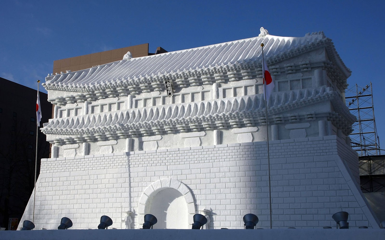 Alături de sculpturile-gigant sunt expuse și numeroase sculpturi mai mici admirabile ca înfățișare, realizate cu măiestrie artistică. Pentru ca atmosfera să fie una plăcută în vecinătatea operelor de gheață se desfășoară o serie de concerte. O frumoasă perspectivă o oferă Turnul TV din Sapporo. Anul trecut, între exponatele reprezentate în gheață s-a numărat o replică a ruinelor Catedralei Sf. Paul din Macao (China) pentru care s-au folosit 2.400 de tone de zăpadă, un Shinkansen (tren de mare viteză japonez) și un teatru shakespearian. Peste 2.000 de persoane au participat la construirea uriașelor statui din gheață. La realizarea sculpturilor s-au prezentat foarte mulți voluntari din țări precum Canada sau Australia.