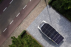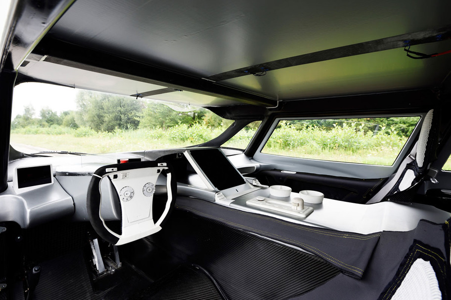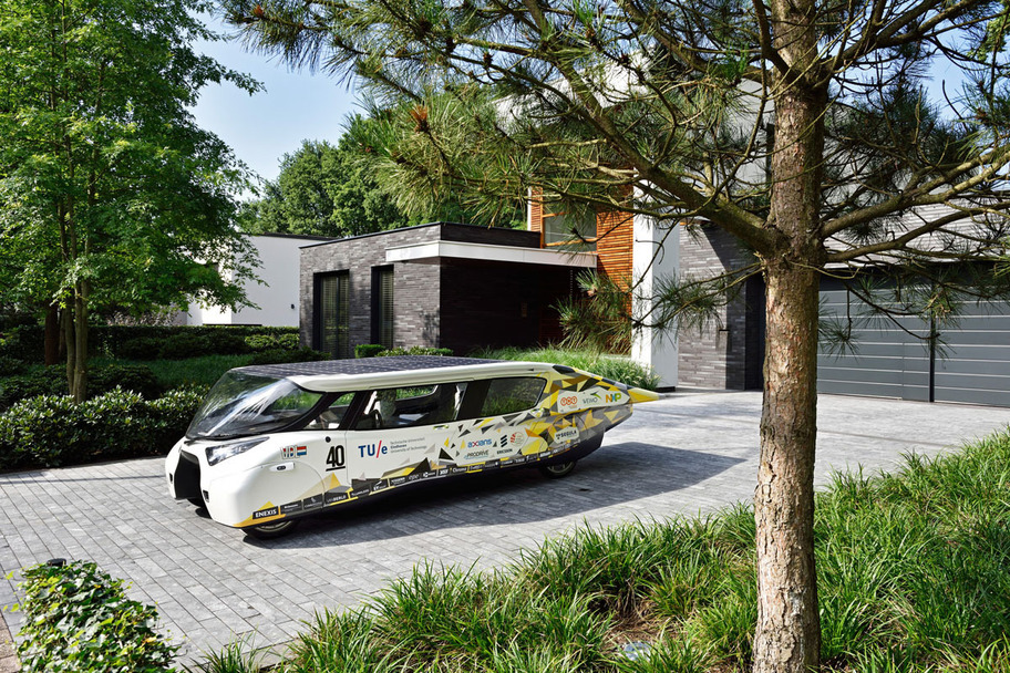 Tot plafonul este acoperit cu 381 de celule fotovoltaice care adună energie de la soare. O baterie mică de numai 15 kWh se încarcă staţionar sau la viteză mică în maximum 45 de minute, cu energie pentru 1.000 de km pe zi.