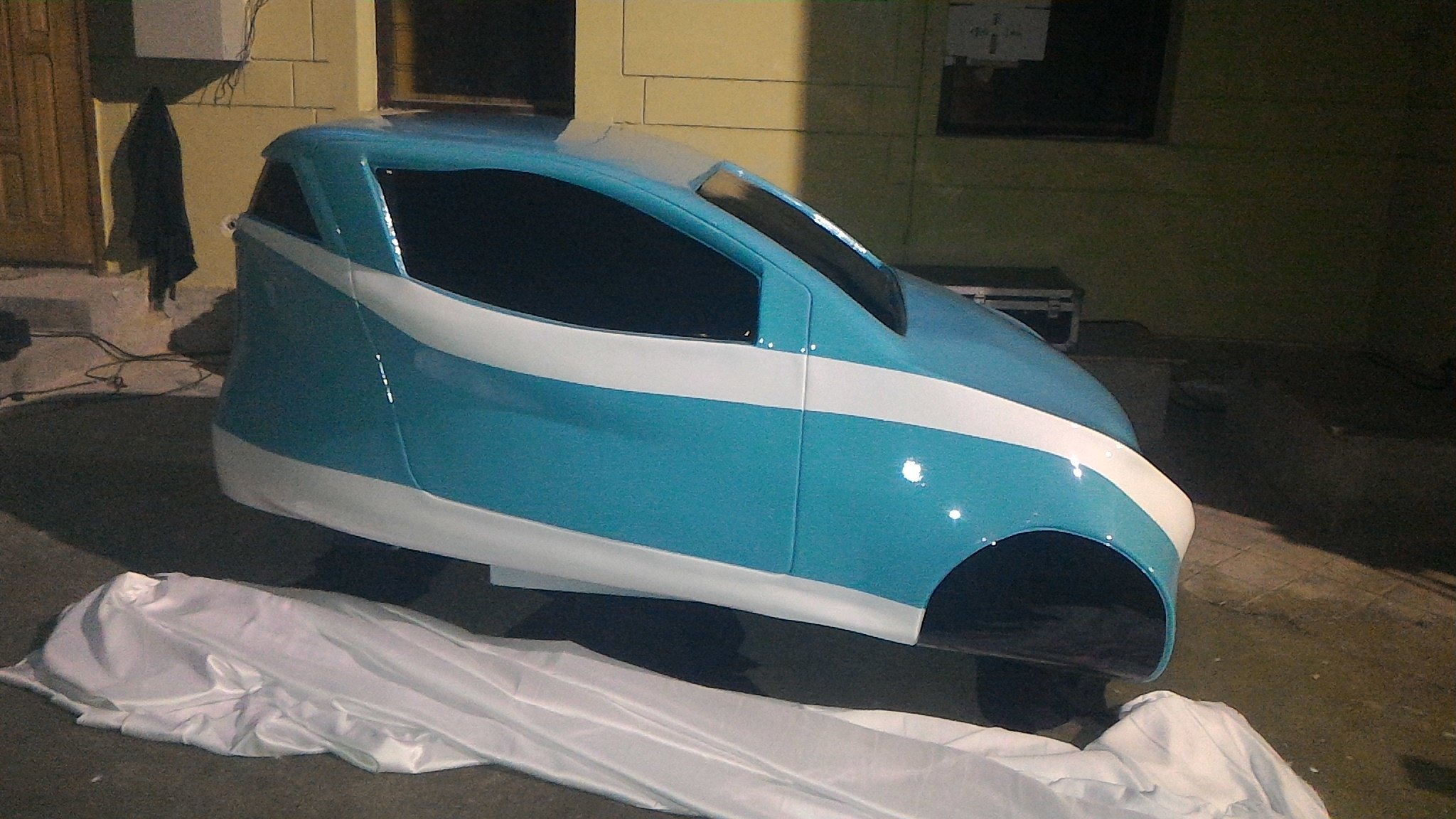 Am lansat în premieră mondială macheta primei maşini electrice low-cost, produsă şi concepută în România şi care a fost complet dezvoltată aici. Tot aici în ţară vrem să o producem. Macheta este din fibră de carbon şi cântăreşte 150 de kilograme, am încercat să fie cât mai uşoară. Maşina va avea trei roţi şi va fi propulsată de un motor electric, iar încărcarea se face cu baterii litiu-ion. Vom avea două versiuni ale maşinii, prima care va avea o viteză maximă de 45 de kilometri pe oră şi să fie folosită doar în oraş şi cealaltă care va atinge 80 de kilometri pe oră”, a declarat Ştefan Breban, de la Universitatea Tehnică Cluj-Napoca (UTCN), membru al echipei care a dezvoltat proiectul maşinii.