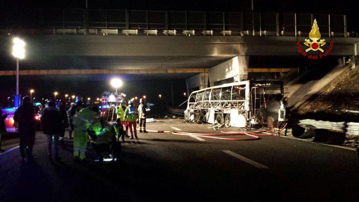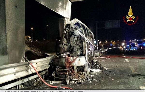 Mai mult de zece persoane rănite au fost transportate la spitale din apropiere în urma distrugerii autocarului care a lovit un stâlp și a luat foc, potrivit serviciilor de prim-ajutor citate de media italiene,notează romaniatv.net