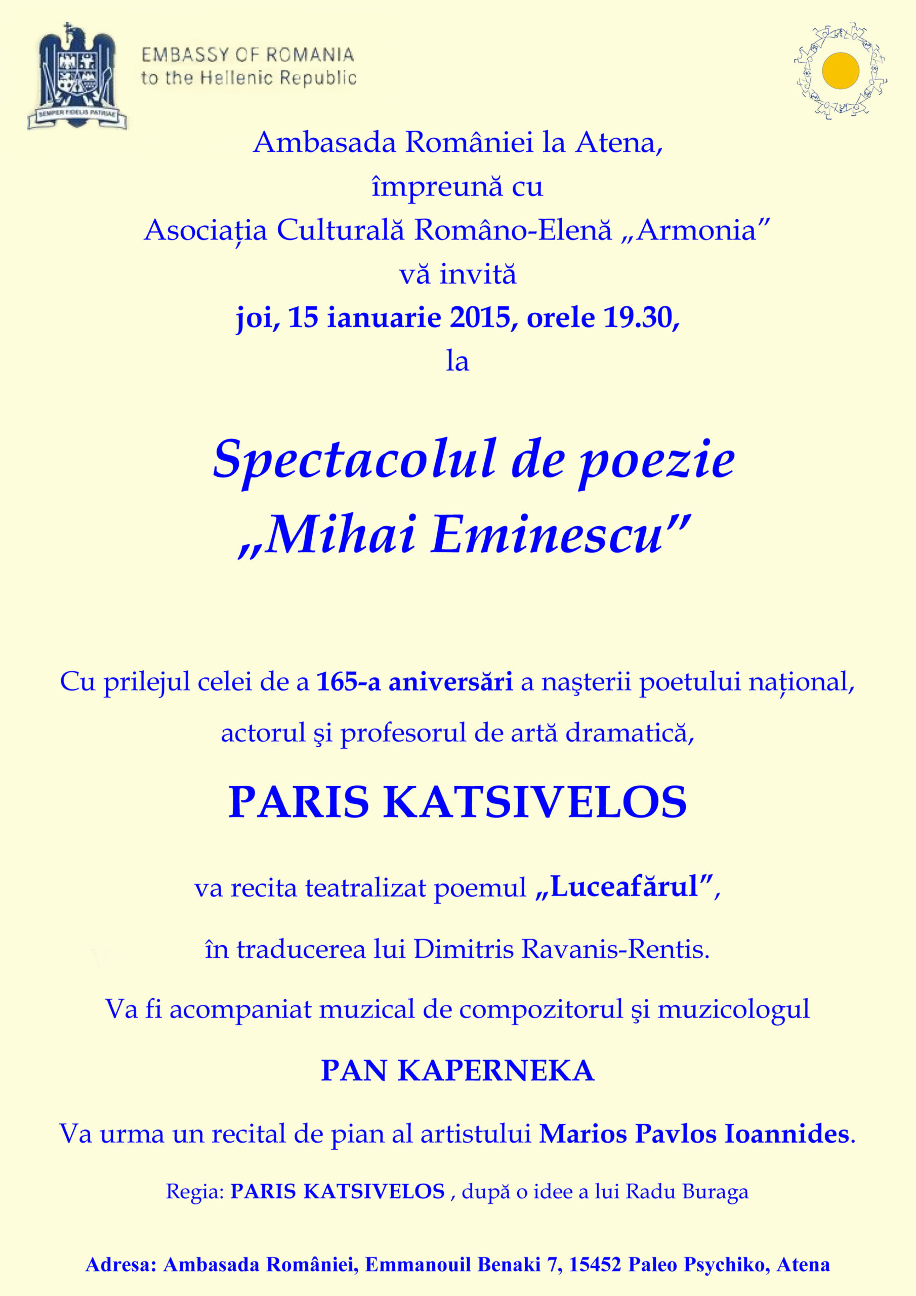 Eminescu aniversat la Atena