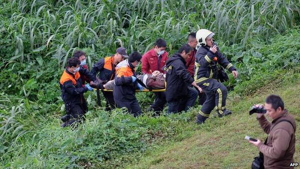 Douăsprezece persoane şi-au pierdut viaţa, în această dimineaţă, după ce un avion al companiei TransAsia s-a prăbuşit într-un râu în Taipei, cu 58 de persoane la bord, acesta fiind al doilea accident în care este implicat un aparat de zbor al companiei taiwaneze în circa şase luni, potrivit unor surse ale pompierilor, informează AFP. Avionul avea la bord 53 de pasageri şi cinci membri ai echipajului. Dintre pasageri, 31 sunt turişti din China continentală, care cel mai probabil se întorceau acasă, întrucât multe persoane vin în Taiwan prin insulele Kinmen. Avionul aparţine TransAsia Airways şi este un ATR72-600. 18 persoane au fost salvate, iar celelalte au rămas blocate în interiorul avionului, scrie presa locală. Avionul, care efectua un zbor intern, s-a lovit de un pod rutier înainte de a se prăbuşi într-un râu din apropiere. Persoanele salvate au fost spitalizate. Serviciile de urgenţă încercau să vină în ajutorul celorlalţi pasageri, informează AFP. Avionul ATR-72 tocmai decolase de pe aeroportul Songshan din Taipei şi se îndrepta către aeroportul din Kinmen, în largul coastei de sud-est a Chinei, a precizat Agenţia de ştiri taiwaneză Central News Agency. Potrivit primelor informaţii difuzate de CNA, aeronava s-a prăbuşit după ce a lovit un viaduct. Un post local de televiziune ETTV a difuzat o înregistrare video în care se vede că avionul este acoperit aproape în întregime de apele râului Keelung, din Taiwan. Potrivit presei locale, câteva persoane au fost salvate şi trimise la un spital învecinat. În iulie, 48 de persoane au murit după ce un avion aparţinând TransAsia Airways s-a prăbuşit în arhipelagul Penghu din Taiwan, din cauza condiţiilor meteorologice nefavorabile.