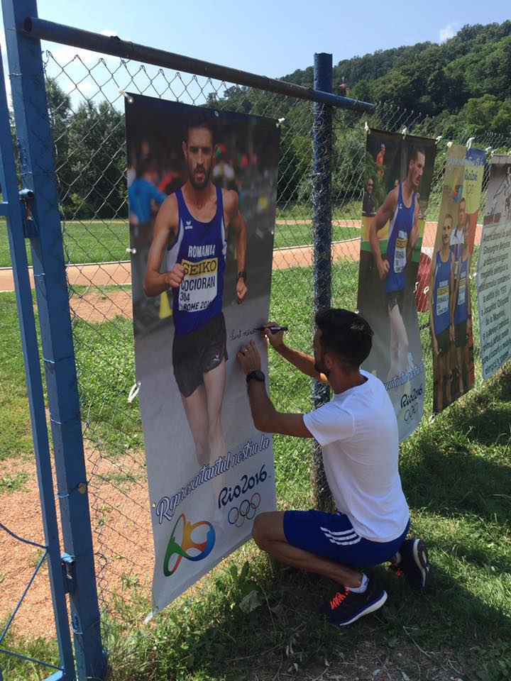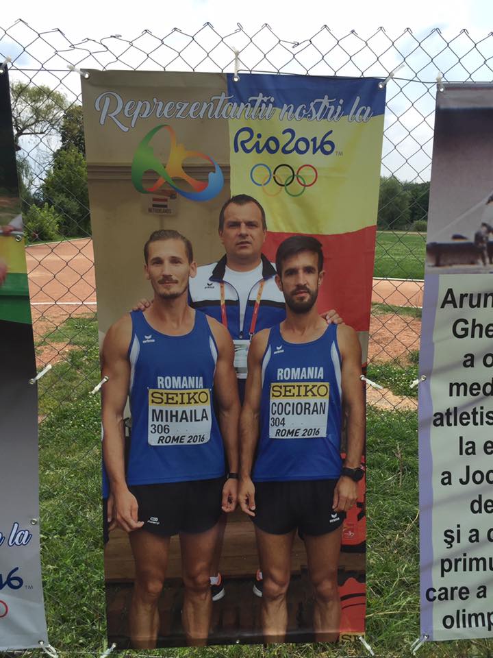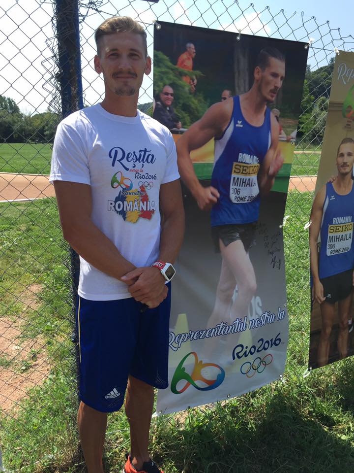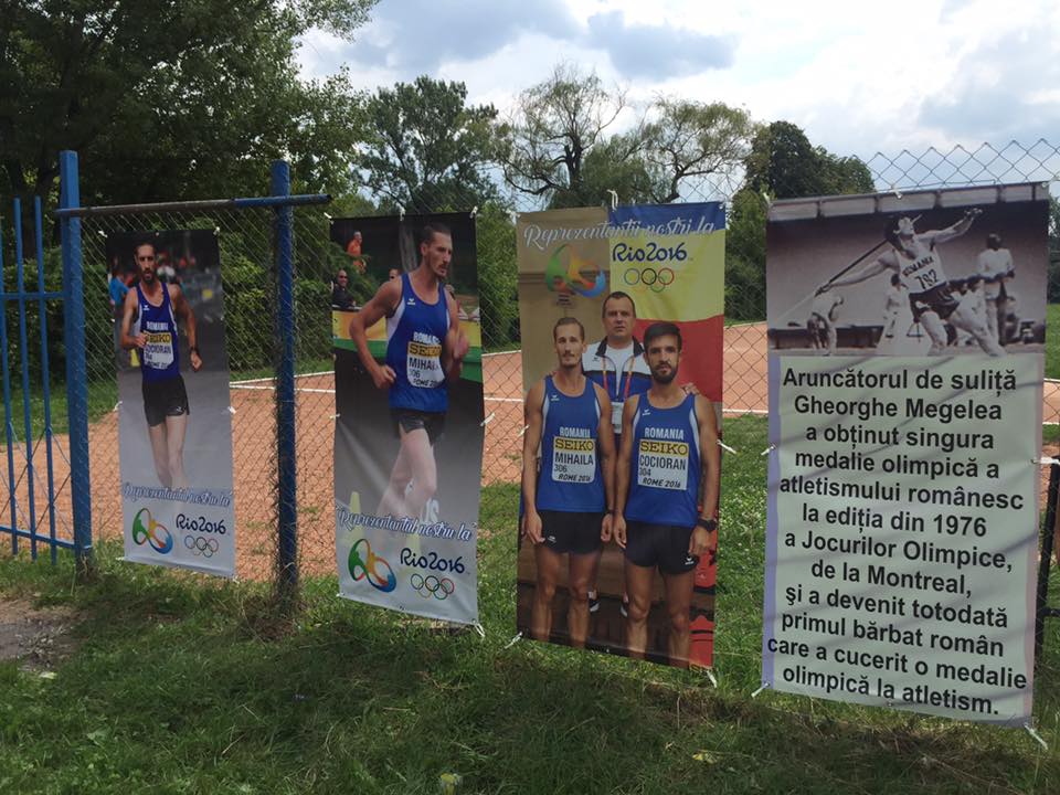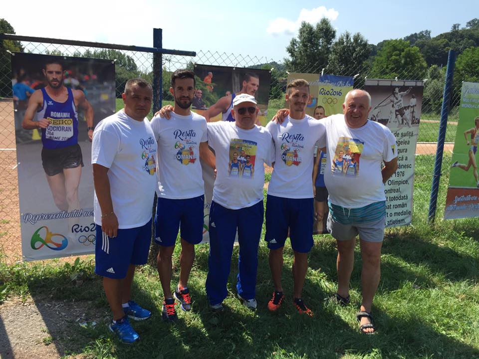 La stadionul de atletism din cartierul Lunca Bârzavei a avut loc astăzi, o întâlnire la care au luat parte și cei doi mărșăluitori Reșițeni, calificați la Jocurile Olimpice de la Rio. La intrarea pe stadion cei doi au fost întâmpinați de o surpriză: bannerele celor doi olimpici reșițeni erau așezate alături de un altul care aparține sulițașul Gheorghe Megelea, primul medaliat olimpic din atletismul masculin românesc.