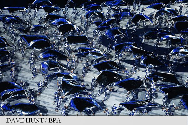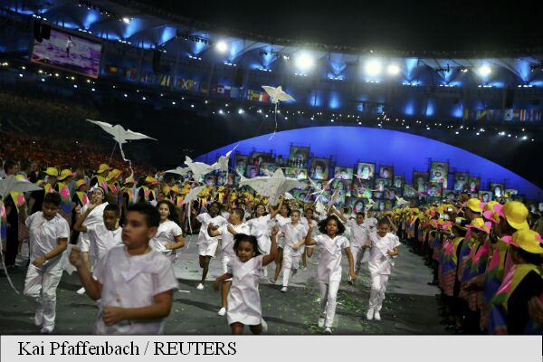 Două sute de copii au alergat pe Maracana cu zmee, din care au căzut mii de porumbei de hârtie, pe care copii de la Rio de Janeiro până la Nairobi au scris ambițiilor lor de pace, pentru o lume mai sigură. După aceea, președintele Temer a declarat Jocurile deschise.