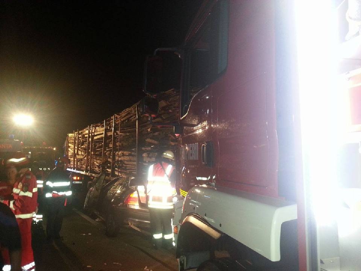 [FOTO] Doi morți pe DN 17 după ce o mașină a intrat sub un autotren