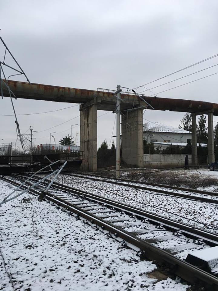 [FOTO] Trafic feroviar complet blocat pe magistrala Bucureşti – Braşov din cauza unei pasarele prăbușite