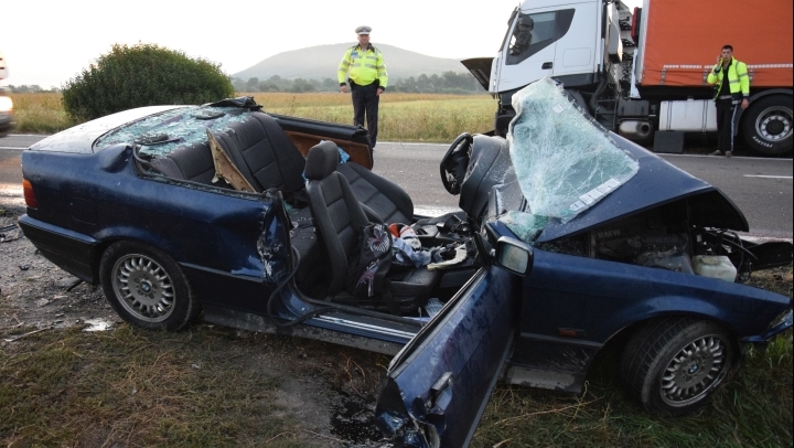 [FOTO] Tragedie pe DN1. Doi oameni au murit, după ce o maşină a intrat într-un autocar