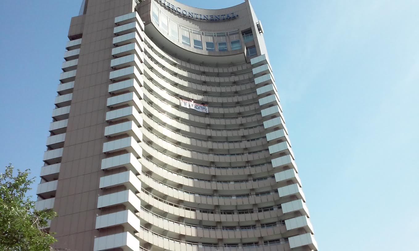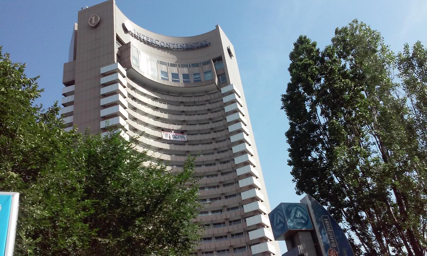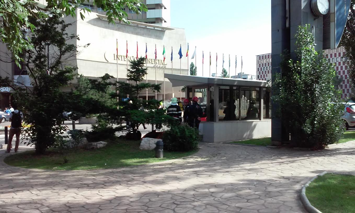 [VIDEO-FOTO] Un bărbat amenință că se aruncă de pe Hotelul Intercontinental!