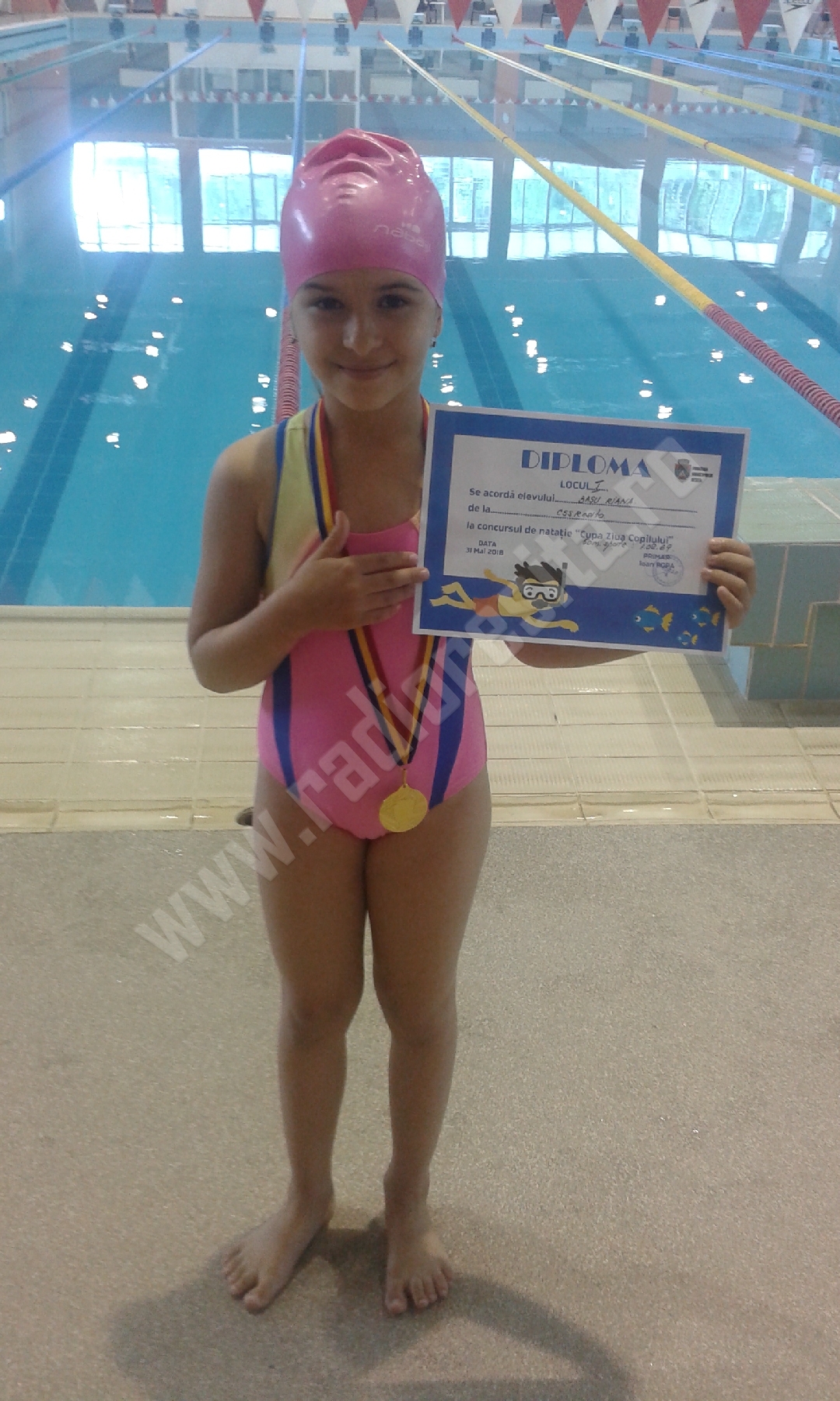 ”Astăzi am participat la Cupa ”Ziua Copilului” și sunt fericită că am luat locul I, în proba de 50 m spate. Eu doresc să practic înotul de performanță.”
