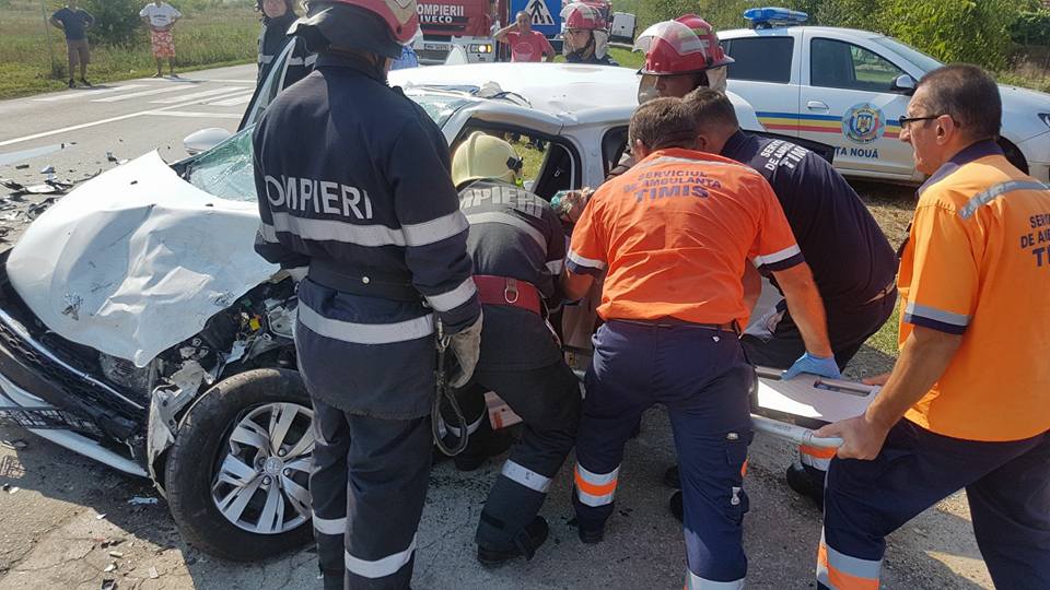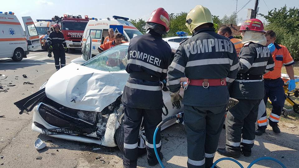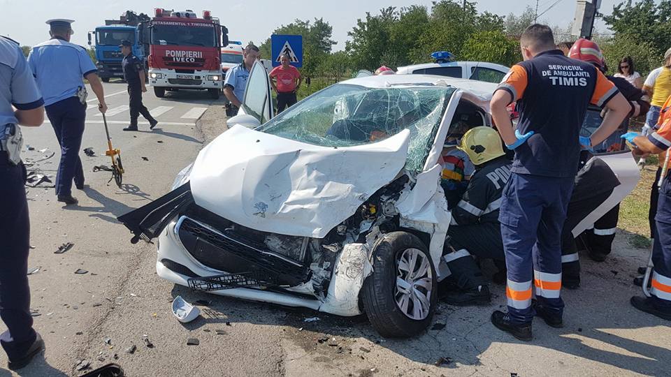 Accident grav lângă Timişoara. Două autoturisme s-au ciocnit violent pe Drumul Judeţean 592 ce leagă municipiul de pe Bega de localitatea Buziaş.