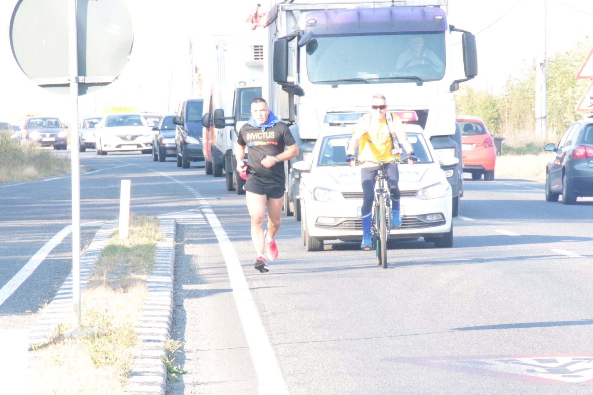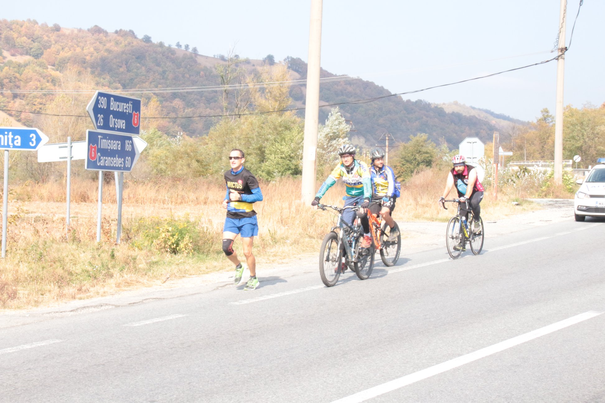A ajuns miercuri seară, în orașul Caransebeș, de unde în această dimineață voluntarii au alergat sau au început pedalarea spre Drobeta Turnu Severin.