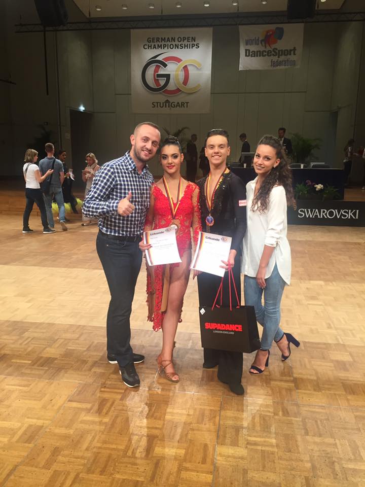 Astăzi a fost intonat imnul României pentru Marius și Adelina și am depășit orice trăire și simțire ce ține de conștient! Suntem mândri că am reușit să aducem țării noastre medalia de aur la cea mai emblematică competiție la nivel mondial- German Open Championships. Vă mulțumim că sunteți elevii noștri, suntem cei mai norocoși antrenori! Mulțumim românilor care au fost alături de noi în acele clipe în care sportivii din Republica Moldova sau Rusia aproape că ne-au copleșit! Multe mulțumiri delegației Federației Române de Dans Sportiv, au concluzionat antrenorii acestora, Ioana Avram și Alexandru Holecz.