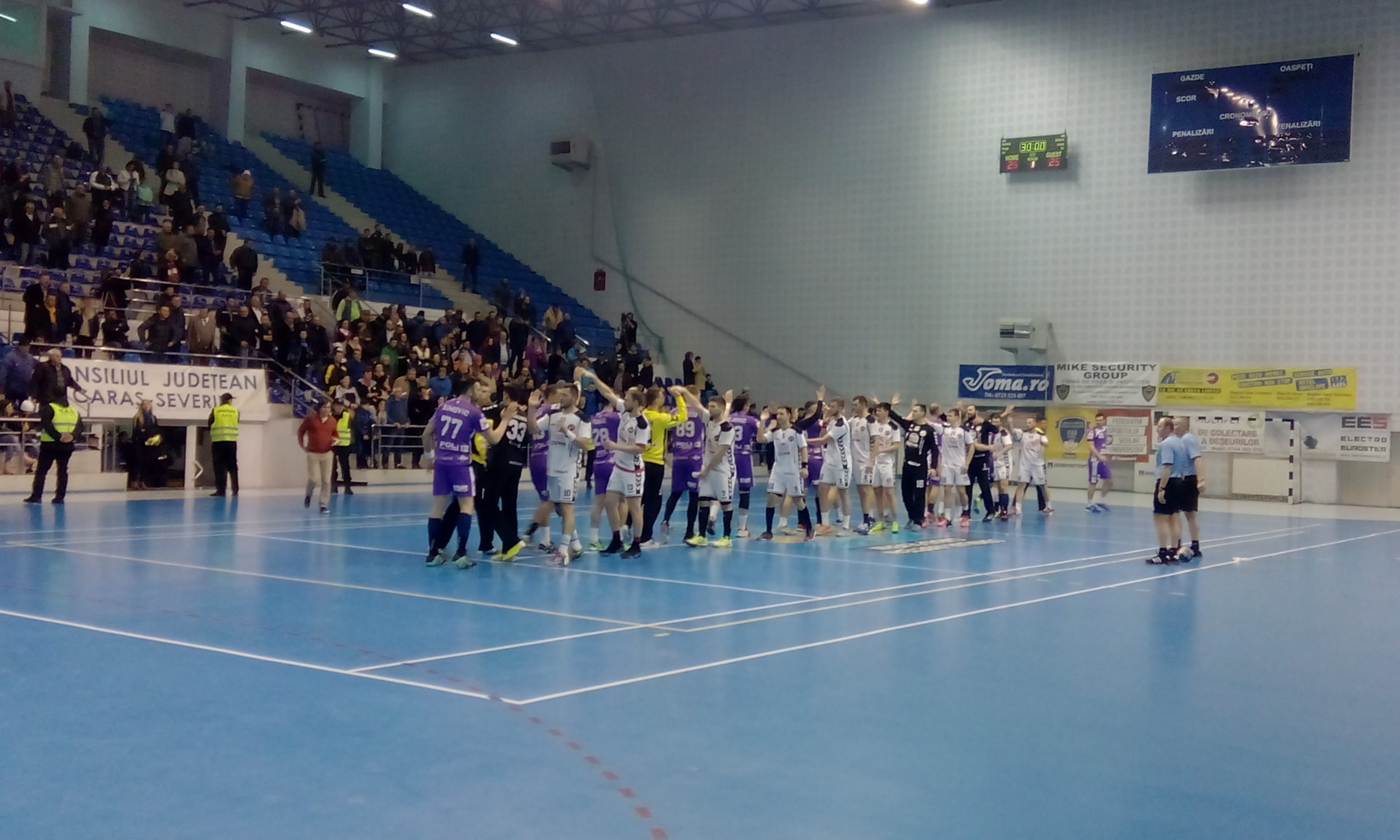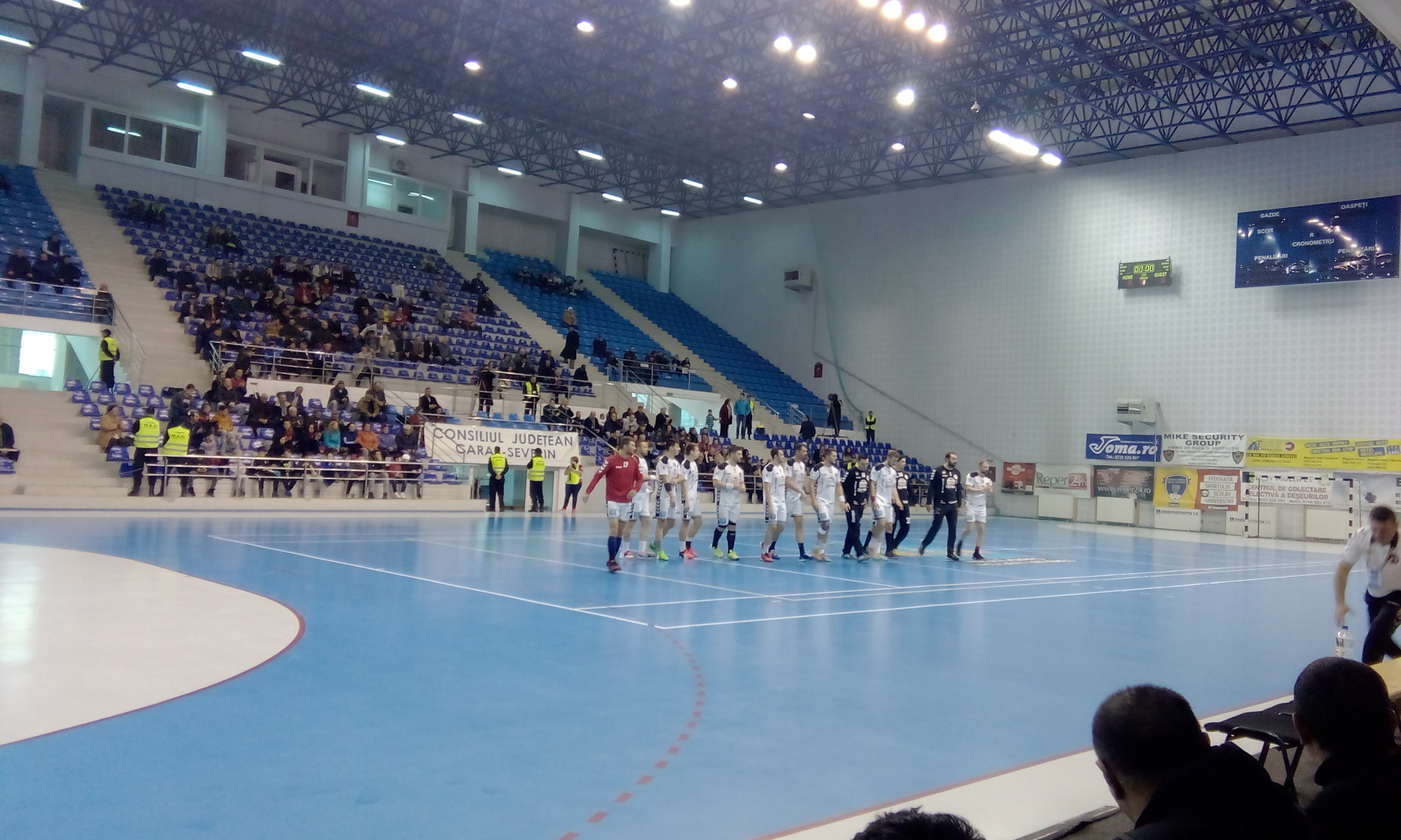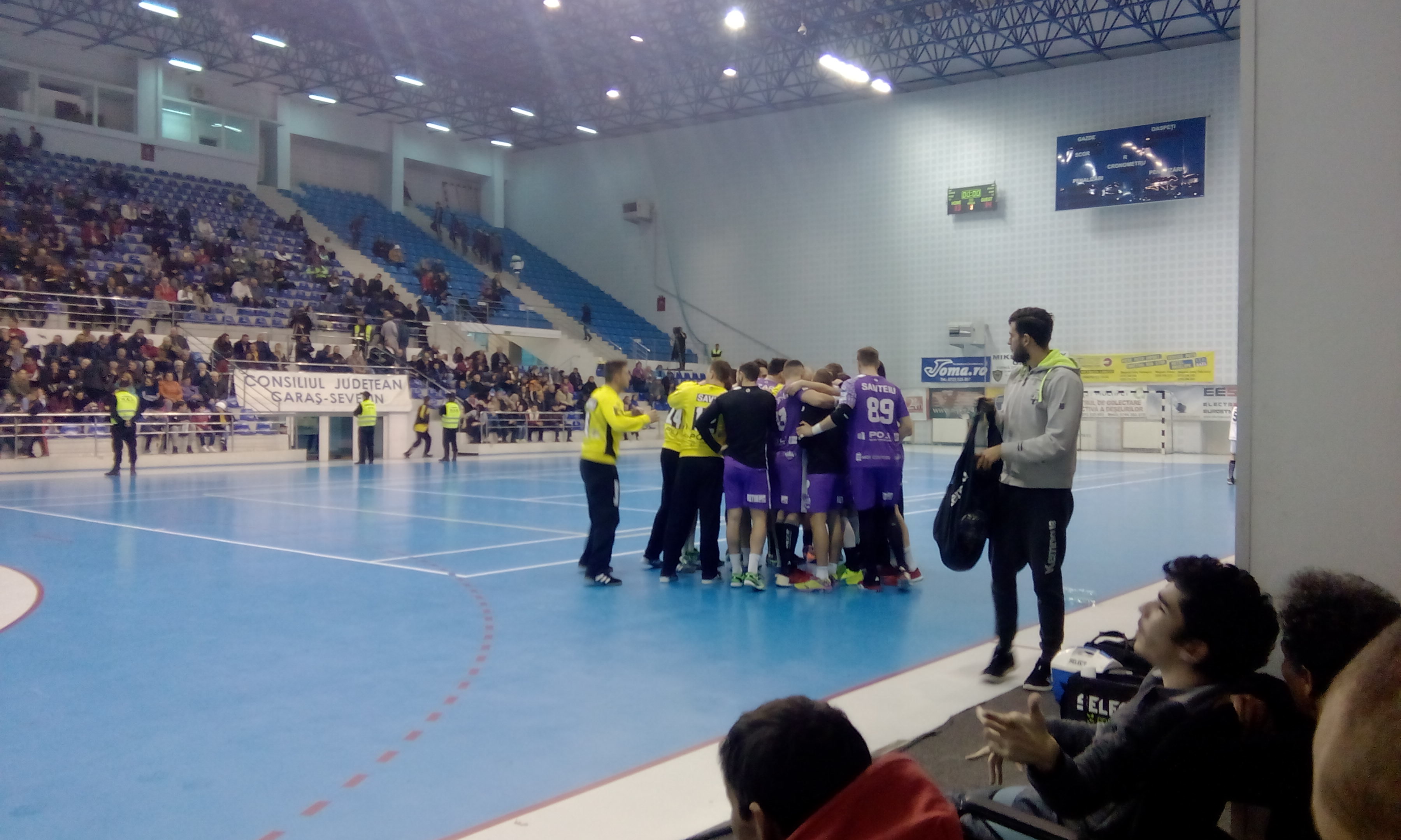 Ambele starturi de repriză au fost slabe pentru cei de la Poli, iar reșițenii au condus cu 7-3, la începutul partidei, însă oaspeții au egalat la 10, au condus cu 12-10 și au intrat în avantaj la pauză cu 14-13. Reșițenii au revenit în actul secund, bazându-se și pe intervențiile portarului Shota Tevzadze.