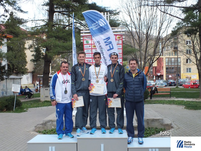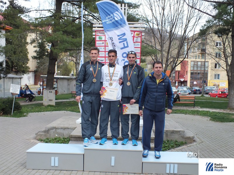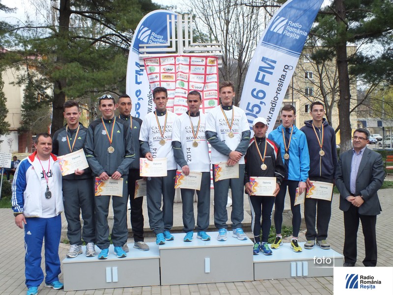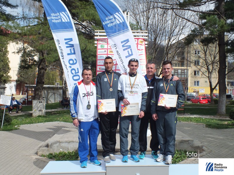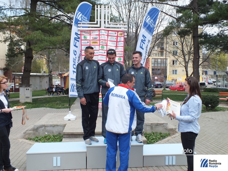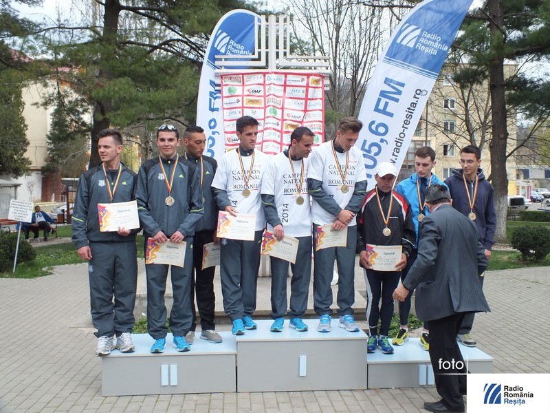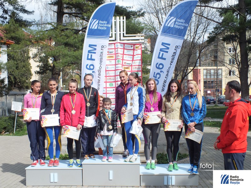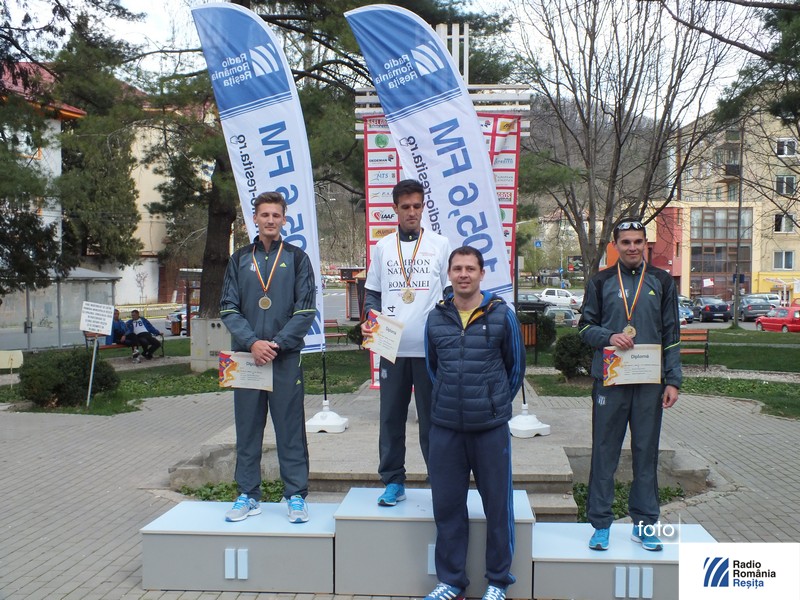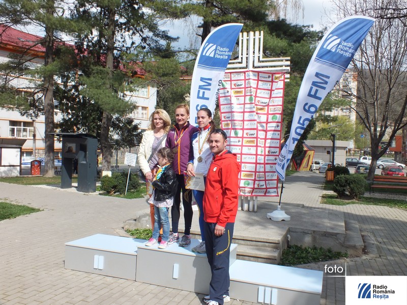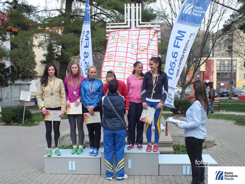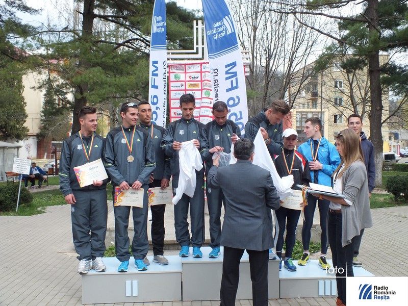 Podiumul Campionatul Naţional de marş pe şosea pentru seniori, tineret, juniori şi copii, la masculin şi feminin, individual şi pe echipe- Cupa Reşiţa: