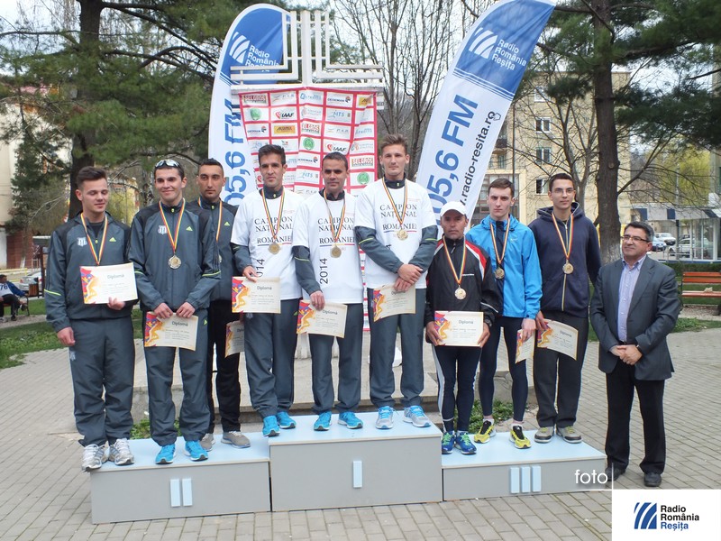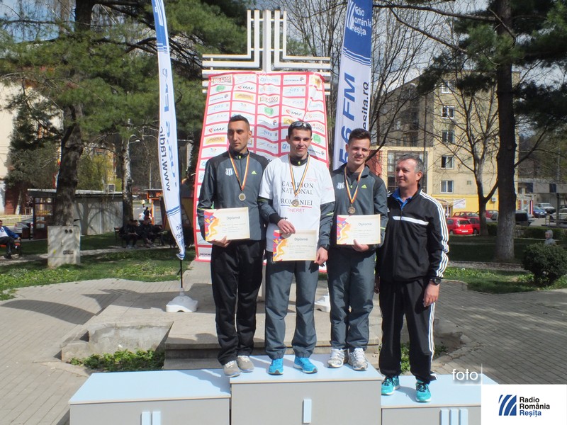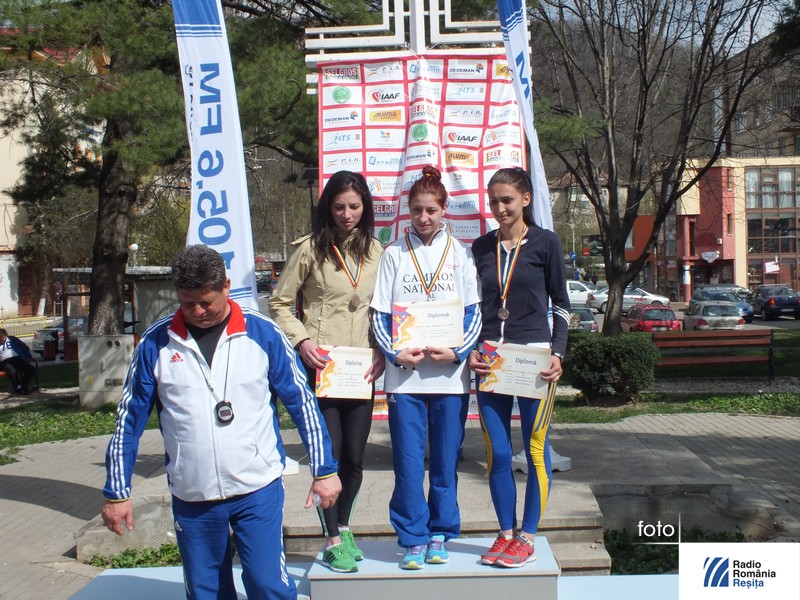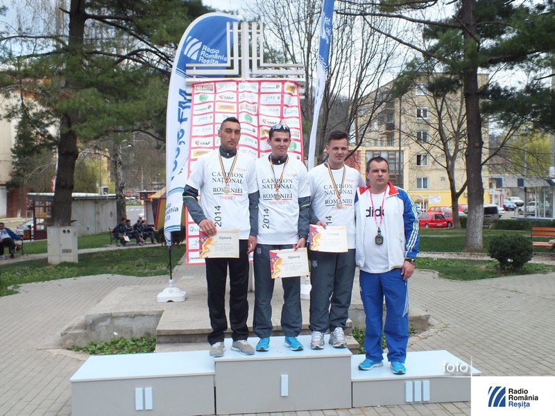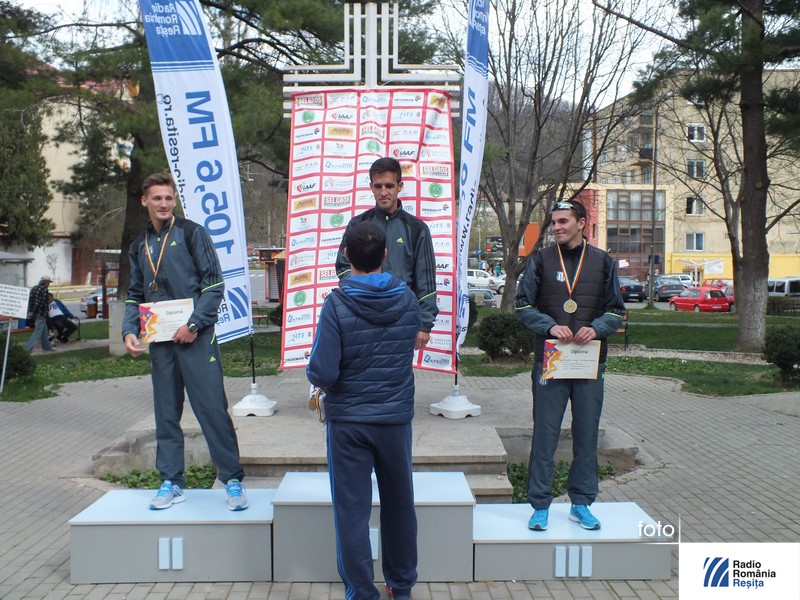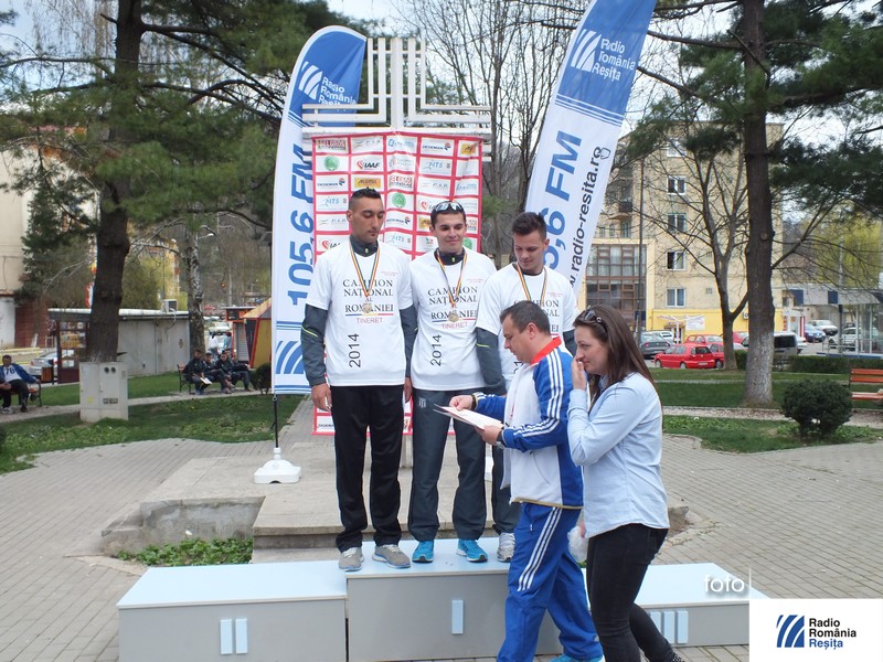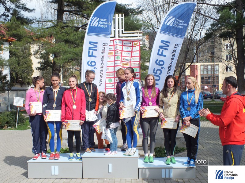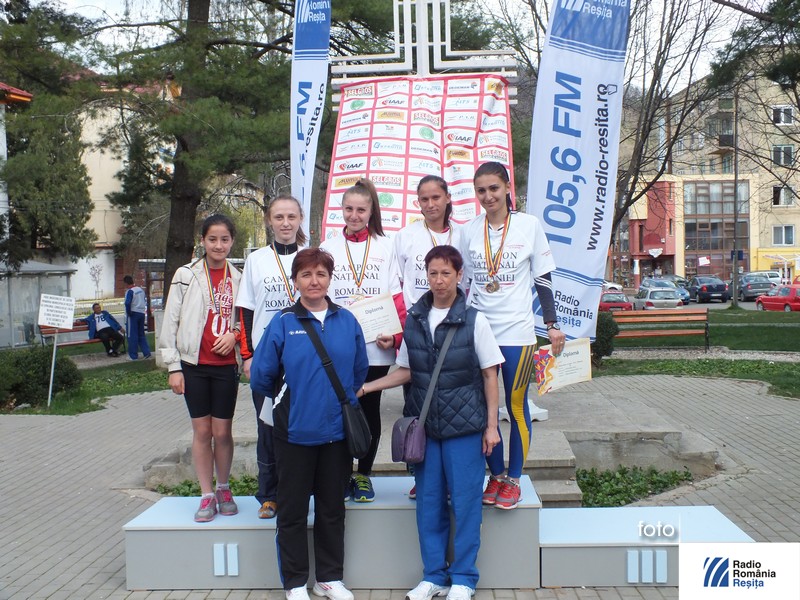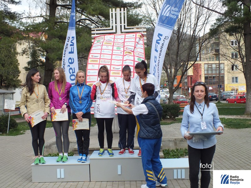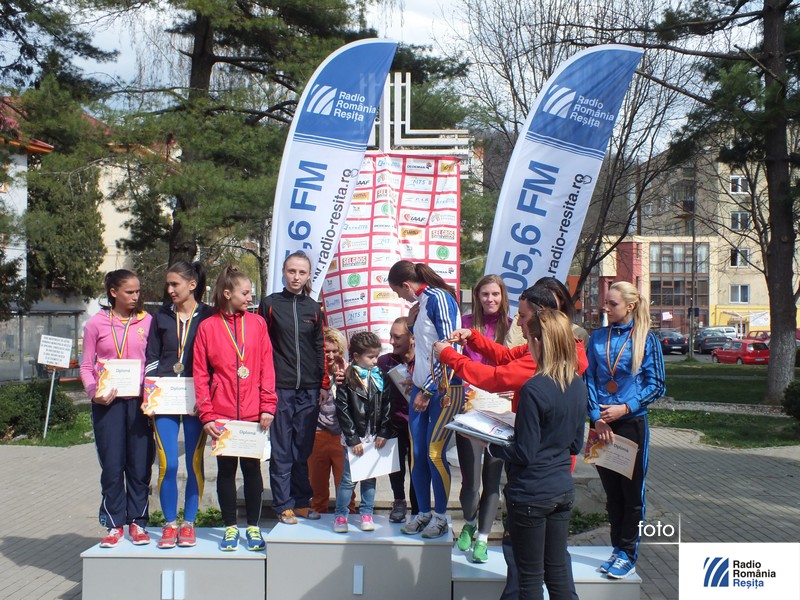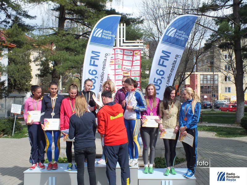 Podiumul Campionatul Naţional de marş pe şosea pentru seniori, tineret, juniori şi copii, la masculin şi feminin, individual şi pe echipe- Cupa Reşiţa: