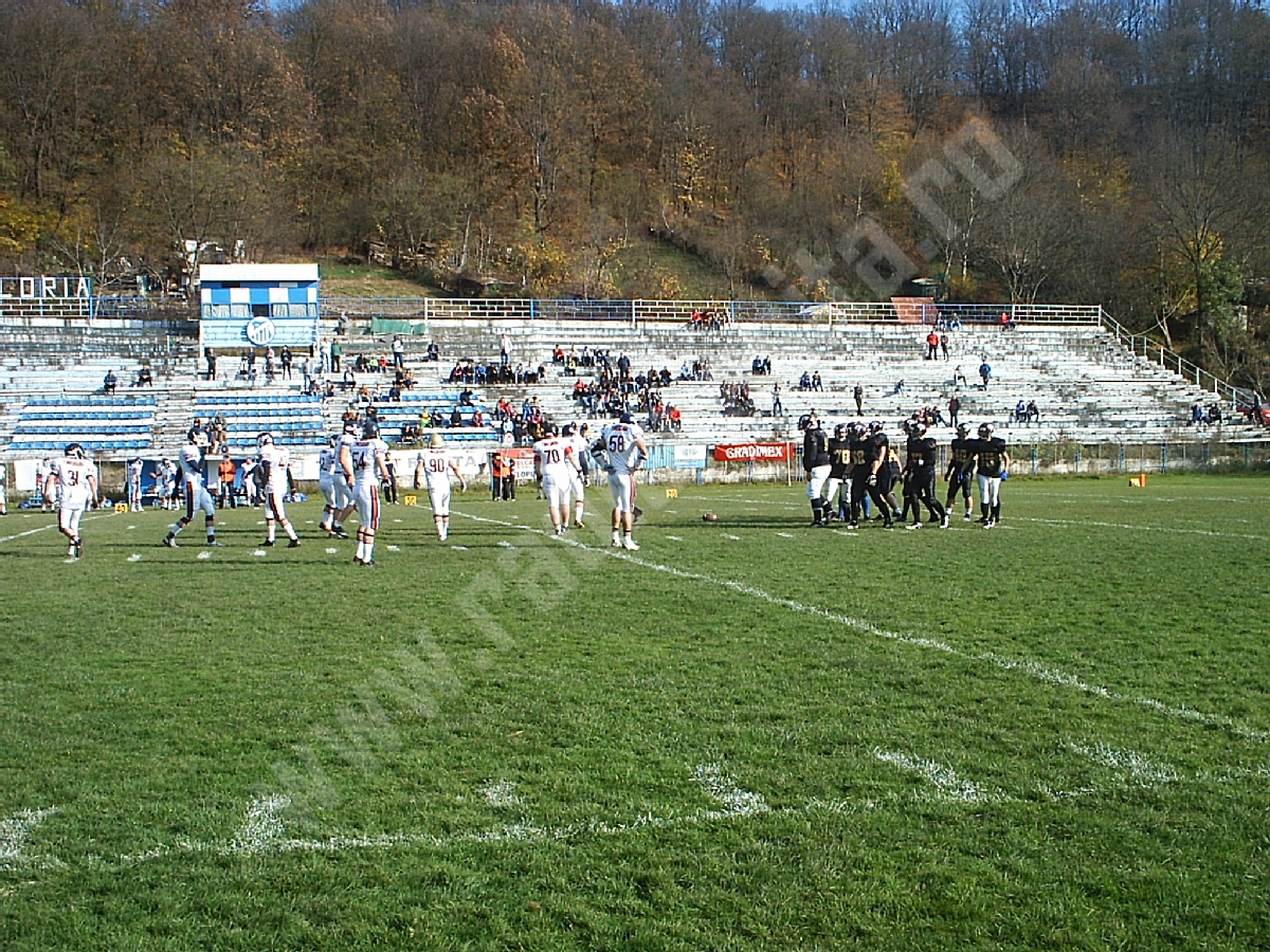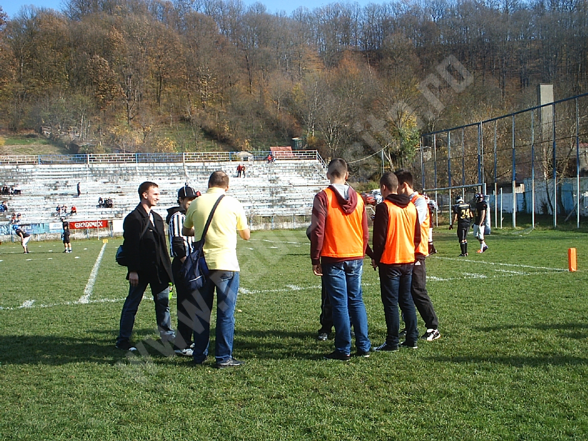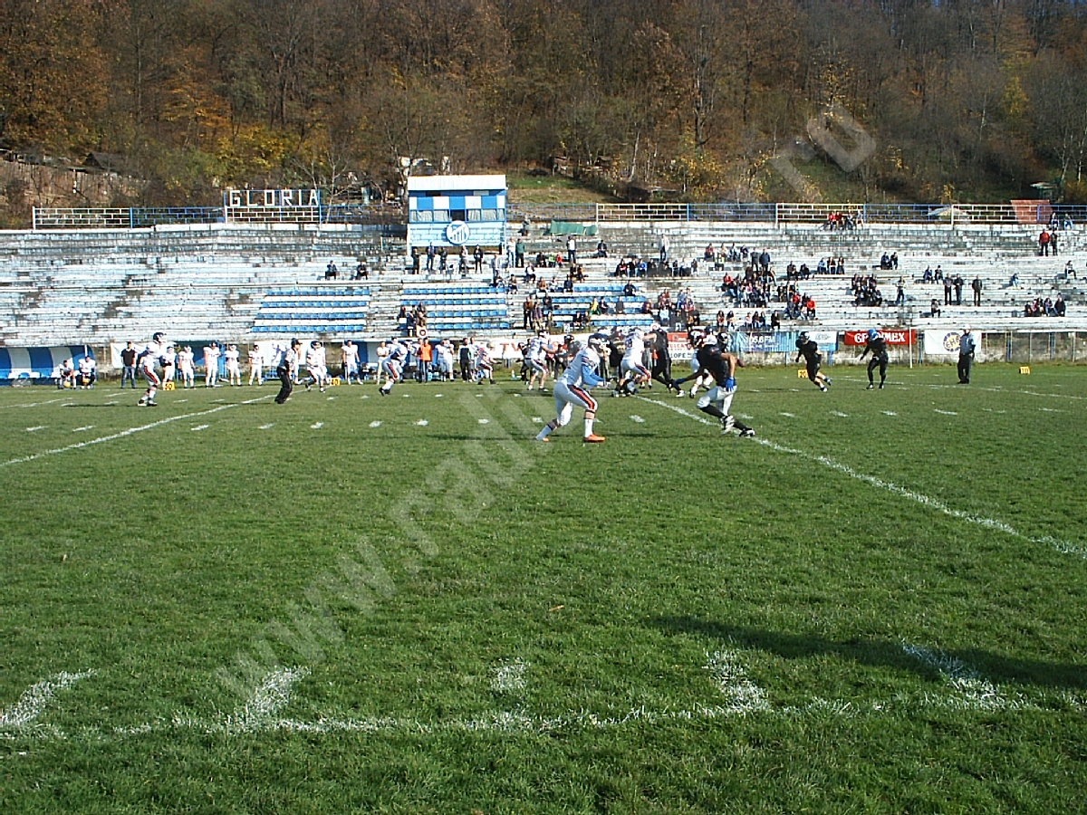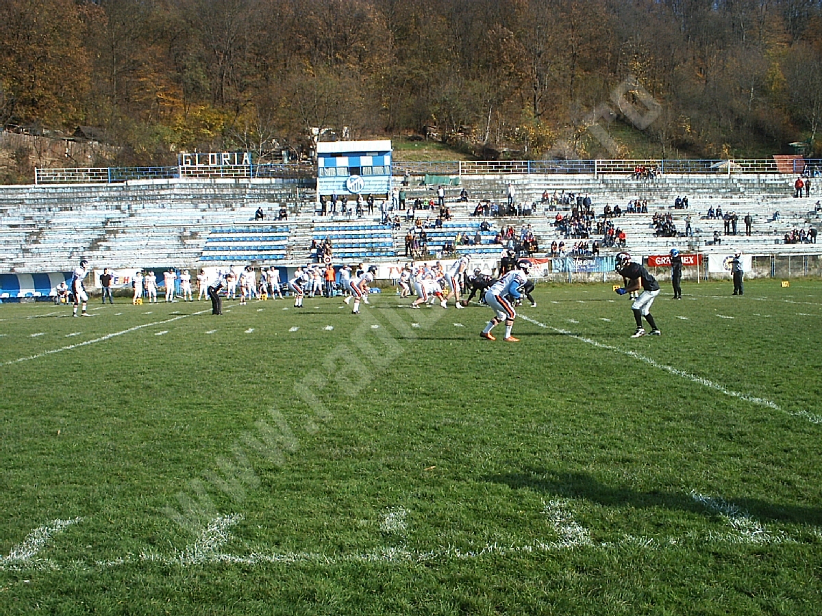 Aproximativ 150 de spectatori s-au aflat sâmbătă, în tribunele stadionului Gloria – rude, prieteni şi iubitori de sport pur şi simplu, curioşi să urmărească „pe viu” un meci de fotbal american.