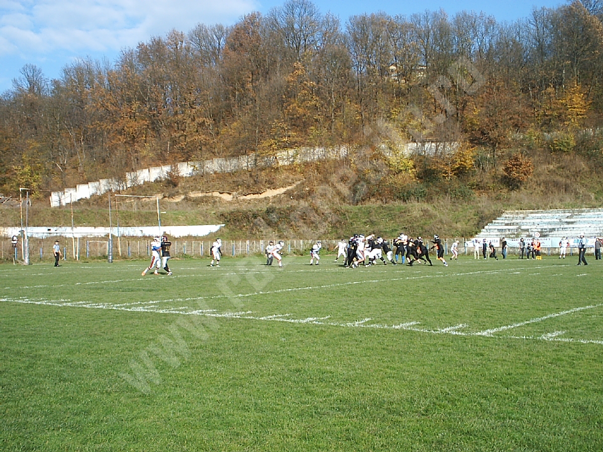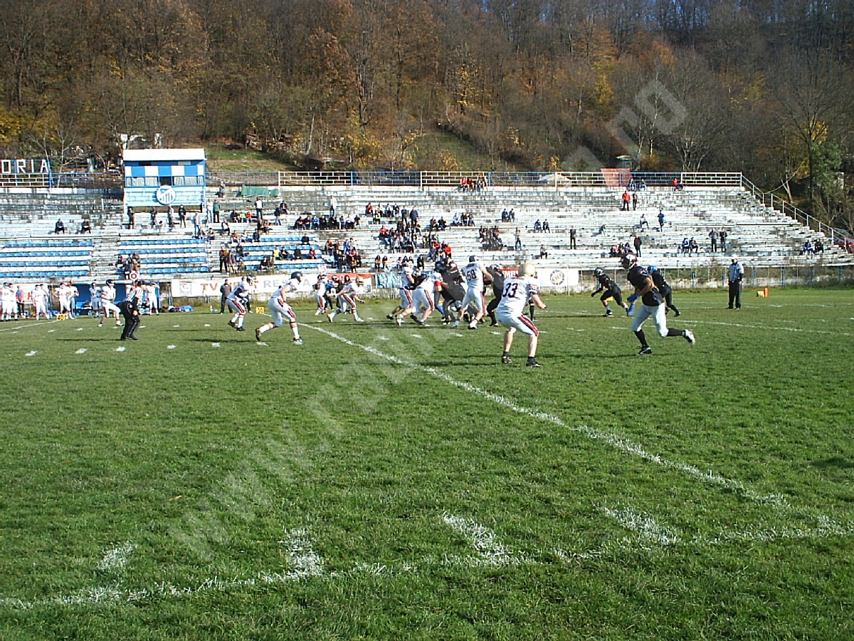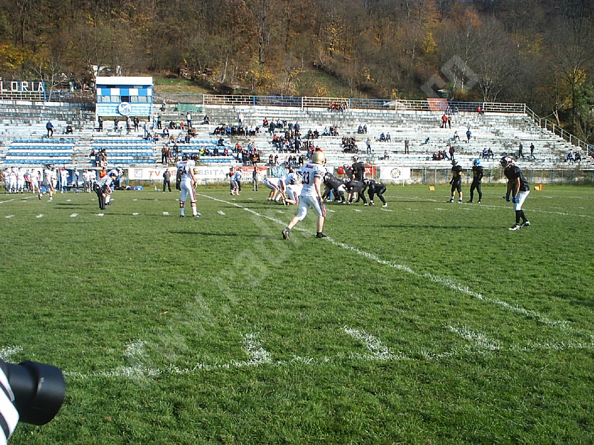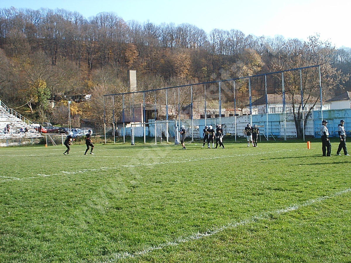 Aproximativ 150 de spectatori s-au aflat sâmbătă, în tribunele stadionului Gloria – rude, prieteni şi iubitori de sport pur şi simplu, curioşi să urmărească „pe viu” un meci de fotbal american.