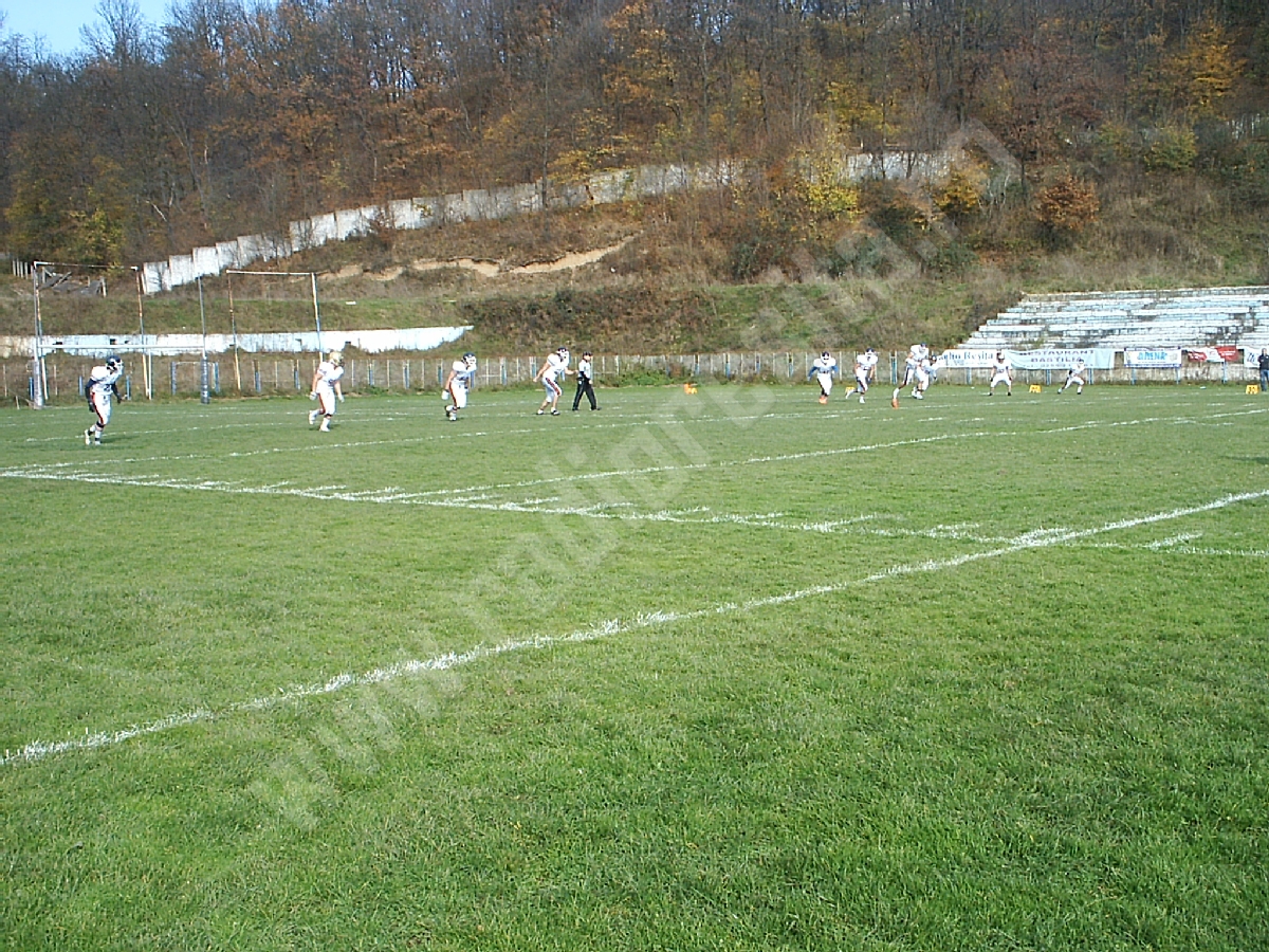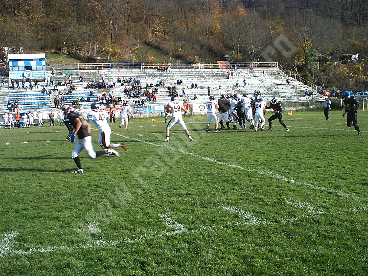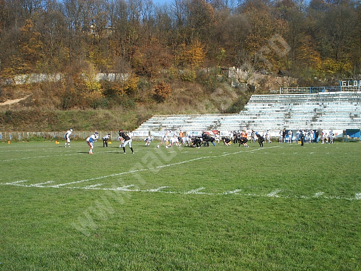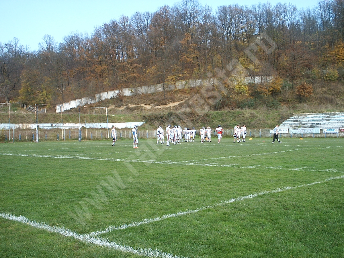 Aproximativ 150 de spectatori s-au aflat sâmbătă, în tribunele stadionului Gloria – rude, prieteni şi iubitori de sport pur şi simplu, curioşi să urmărească „pe viu” un meci de fotbal american.