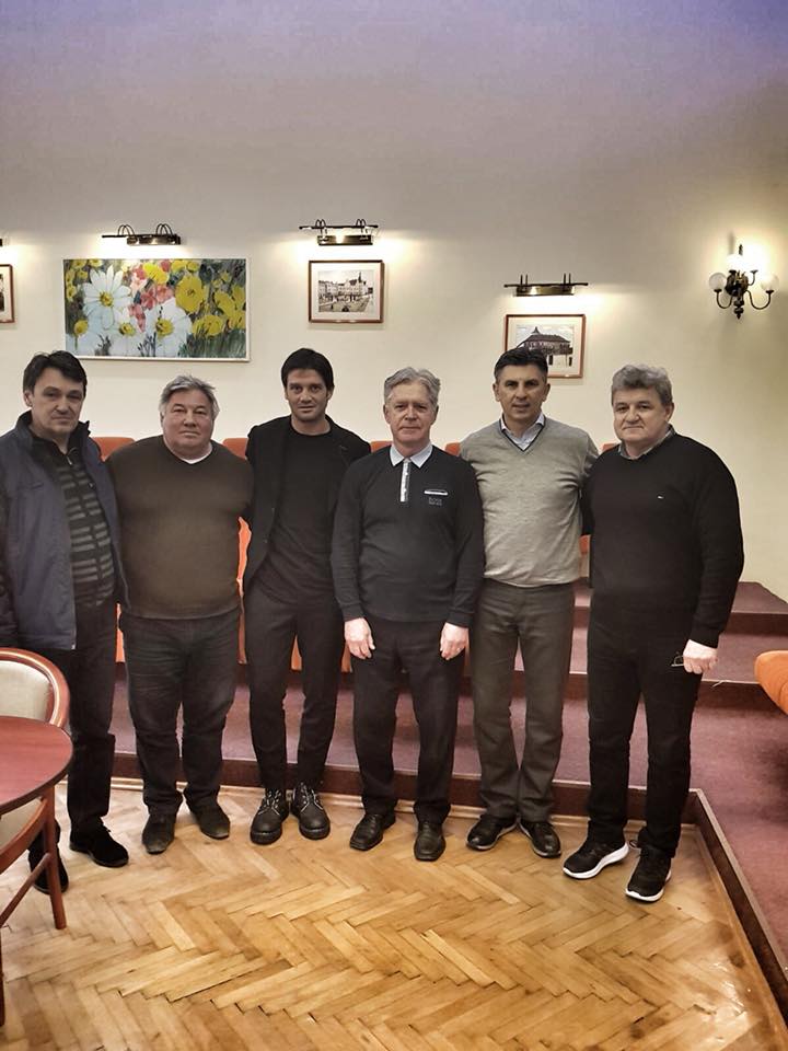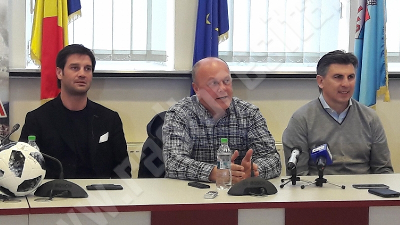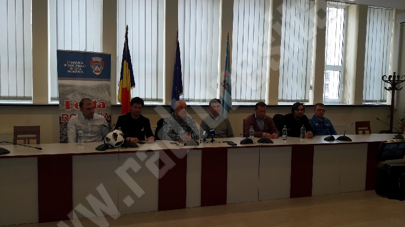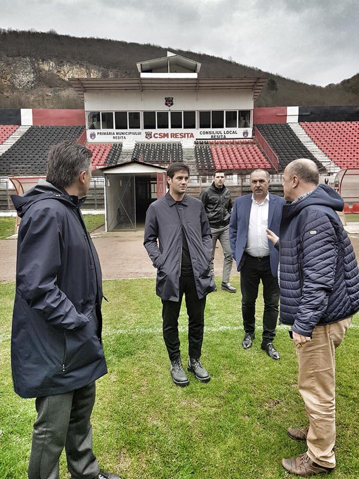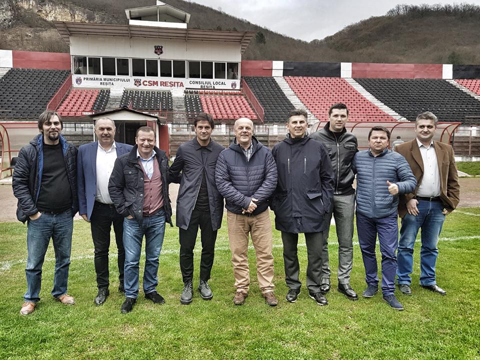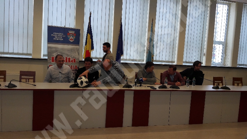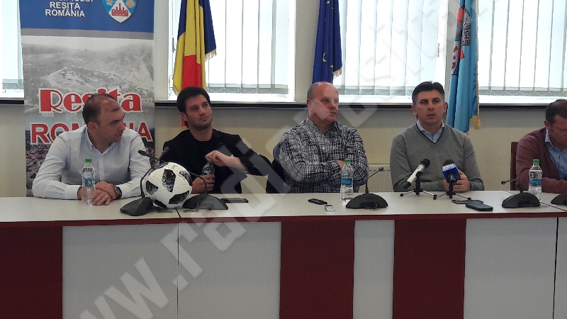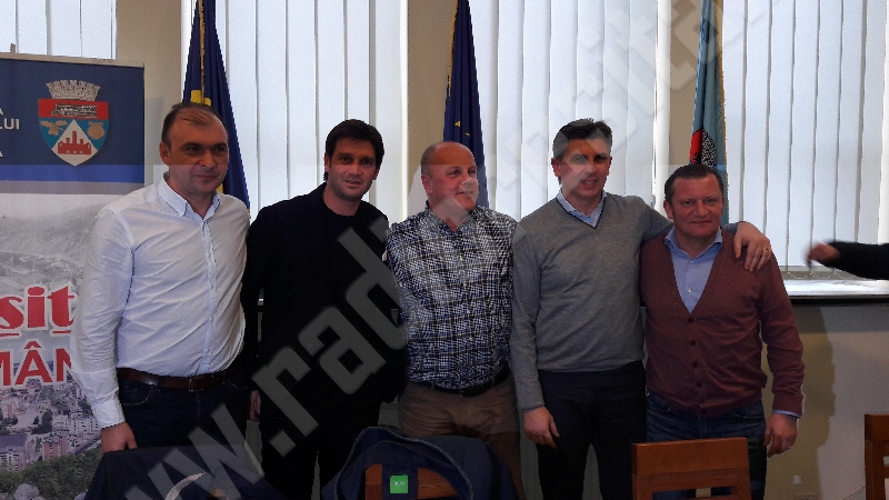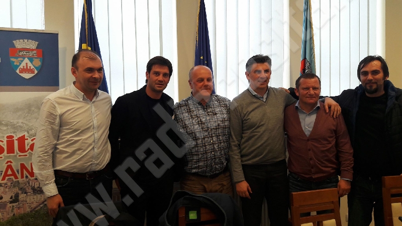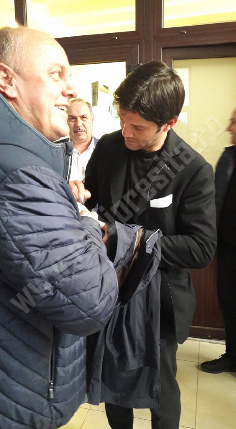 Înainte de ajunge la Reșița, staful lui Ionuț Lupescu a fost primit de oamenii de fotbal din Caransebeș, la Primăria orașului.