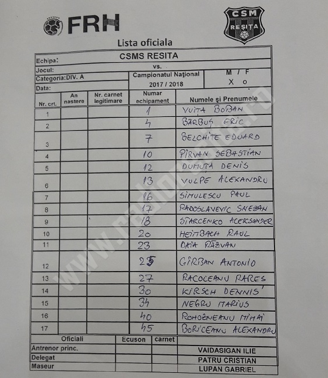 La început de joc publicului reșițean i-a fost prezentat lotul echipei CSM Reșița, cu care se dorește promovarea în ediția 2018-2019 a campionatului.