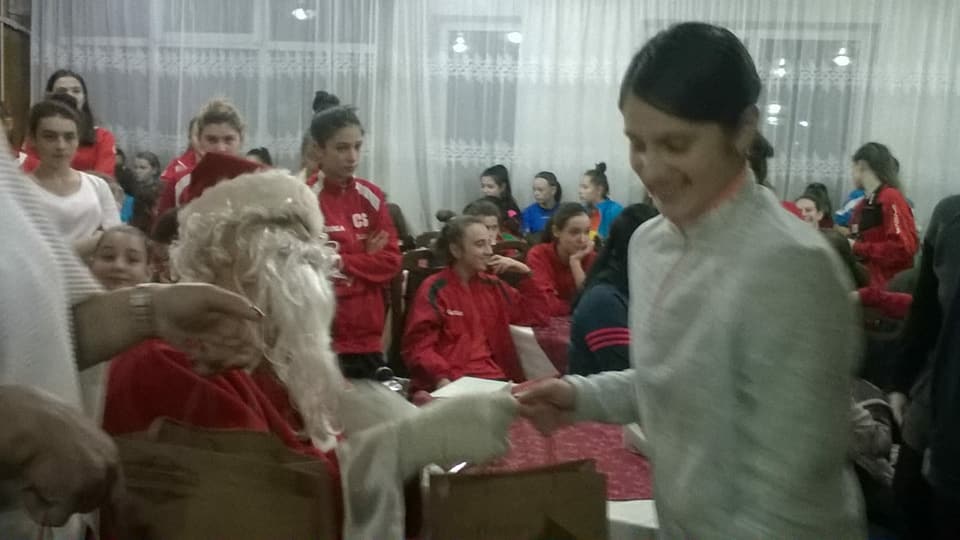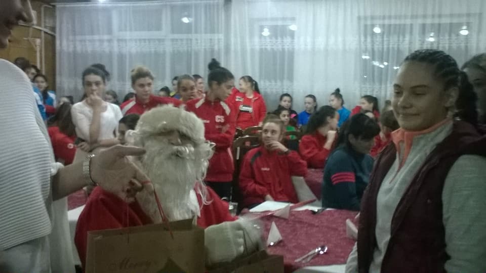 Handbalistele junioare s-au întâlnit la Râmnicu Vâlcea, locul de desfășurare al trialului, cu Moș Crăciun, care le-a oferit fiecăreia câte un cadou.