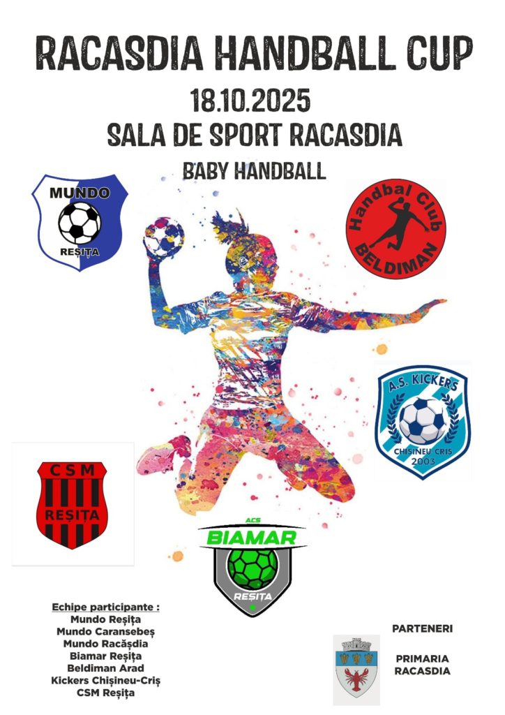 Cei mai mici handbalişti de la cluburi din Reşiţa, Caransebeş, Răcăşdia, Arad şi Chişineu Criş se vor întrece în weekend la Răcăşdia! Organizatorul competiţiei de babyhandbal este clubul Mundo, care a deschis anul acesta o filială în localitate.