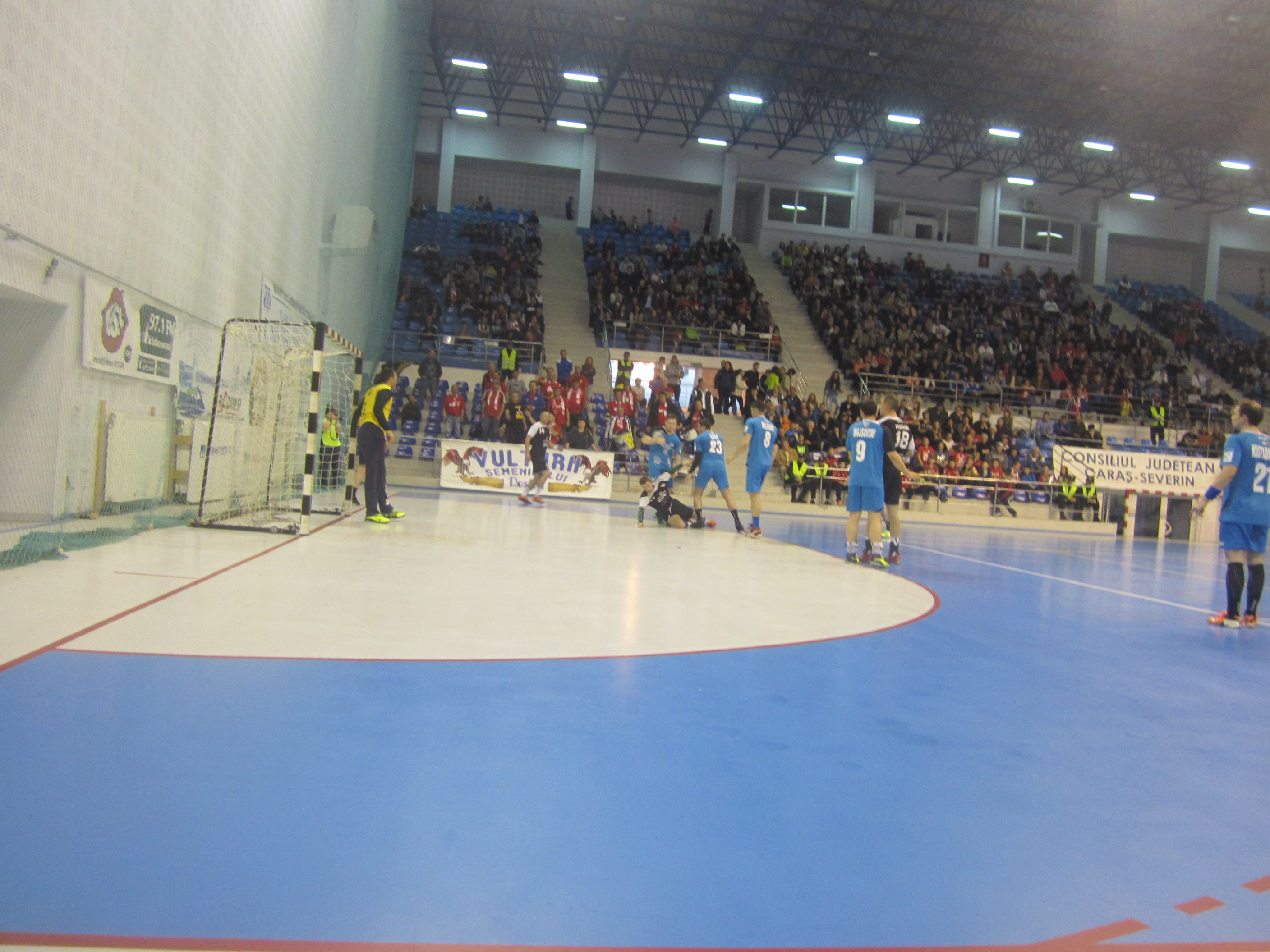 La partida de la Reşiţa, cei aproape 1000 de suporteri au încurajat echipa resiţeana HC Adrian Petrea, care avea neaparată nevoie de victorie în faţa celor de la CSM Bucureşti, pentru ca FRH să programeze o a treia partidă de baraj, pe data de 4 mai 2016. In partida tur, disputată la Bucureşti, pe data de 23 aprilie 2016,la Bucuresti, echipa locala s-a impus cu scorul de 30 -29! Din pacate, echipa resiţeană a pierdut şi meciul din Sala Polivalentă, cu scorul de 26-22 (9-14), o partidă în care bucureştenii au condus ostilităţile pe tabela de marcaj de la un capat la altul. Cea mai mare diferenţă de goluri dintre Reşiţa şi cei de la CSM Bucureşti s-a înregistrat in minutul 20, scor 11-5. Elevii lui Adrian Petrea au avut o tresărire de orgoliu pe final de partidă, între minutele 52-54, cand au avut o serie de trei goluri consecutive şi s-au apropiat la patru goluri ecart de CSM: 19-23. In final, CSM Bucuresti a readus diferenta la cinci goluri, 20-25, cu doua minute înainte de fluierul final al arbitrilor clujeni, Mirza si Nedelea. Cei mai prolifici jucatori resiteni au fost Vaidasigan cu 6 goluri şi Rohozneanu – cu 5 reusite.De la bucuresteni, Marijanac, Humet si resiteanul Negru au inscris cate sase goluri.