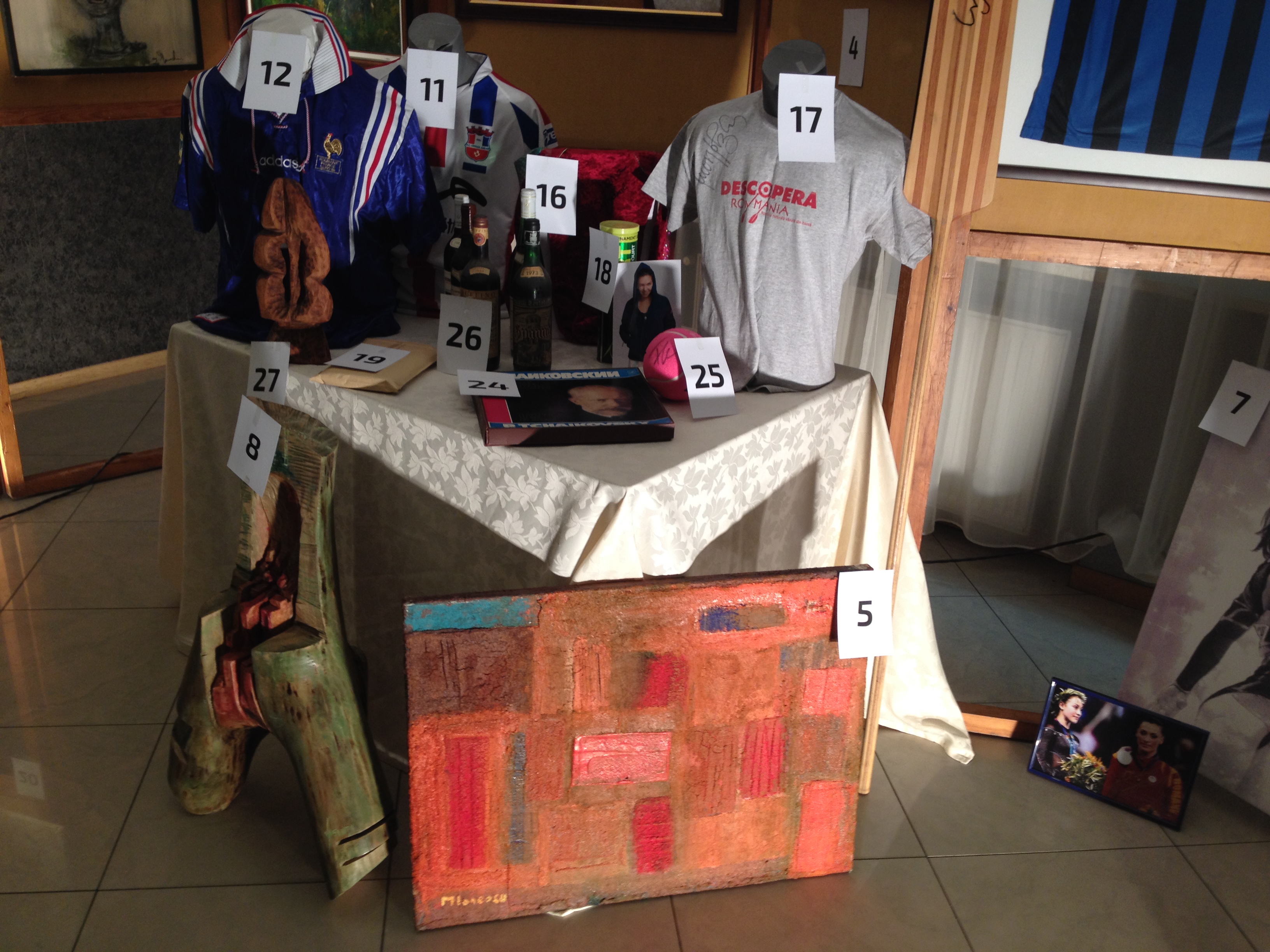 Din cele peste 30 de de obiecte şi tablouri propuse pentru licitaţie s-au numărat tricoul regelui fotbalului românesc – Gheorghe Hagi şi al căpitanului echipei naţionale din ultimii 10 ani, Cristi Chivu. Nici pasionaţii de artă nu au fost dezavantajaţi, acestora fiindu-le puse la dispoziţie tablouri pictate de Marian Truţulescu, Kurta Cazimir, Petru Galiş sau Nicolae Ungar. Iar colecţionarii au avut o paletă largă de obiecte la dispoziţie. Este vorba despre ediţia princeps a volumului Memories de Goethe, din 1914 sau un set de 7 discuri de vinil, Piotr Ilici Ceaikovski – colecţie editată în anul 1978 în fosta URSS şi multe altele.