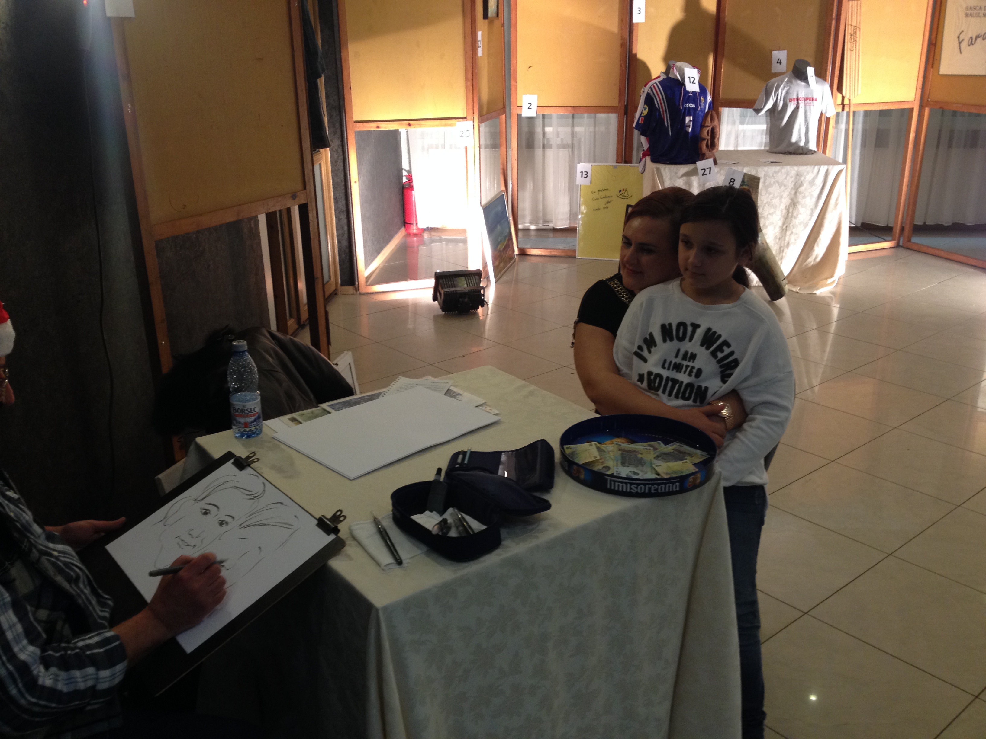Acţiunii i s-a alăturat şi caricaturistul Cristian Vecerdea de la Lugoj, un fan Radio Reşiţa, care în schimbul donaţiilor de peste 750 de lei a desenat la minut portretele doritorilor participanţi la bal.