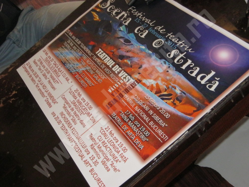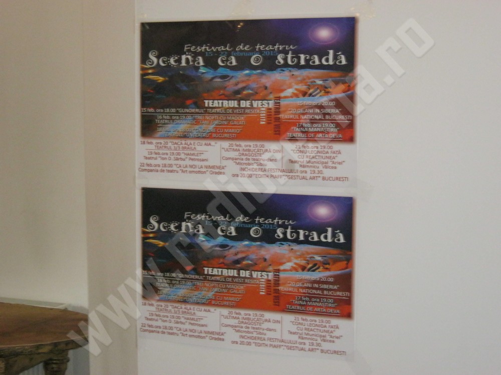 Festivalul naţional de teatru „Scena ca o stradă” va avea loc în premieră la Reşiţa, în perioada 15 – 22 februarie, a precizat actorul Dan Mirea. Pe o perioadă de 8 zile, publicul reşiţean va avea prilejul să vadă 12 companii de teatru, Festivalul va debuta duminică de la ora 18.00, cu o producţie a Teatrului de Vest Reşiţa urmată de la ora 20.00, de o reprezentaţie a Teatrului Naţional “I.L. Caragiale” Bucureşti. Doritorii pot achiziţiona bilete la Agenţia teatrului din municipiul de pe Bârzava, zilnic de la ora 9.00 la ora 14.00.